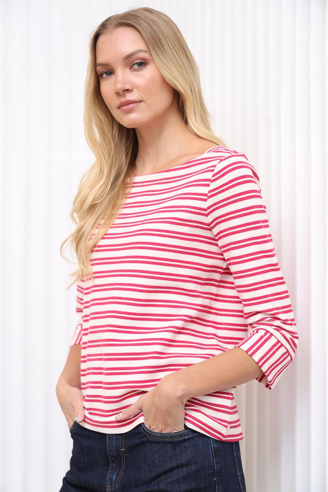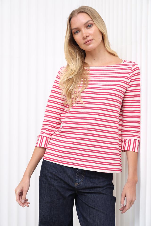 Этот стильный лонгслив от Penny Black станет отличным дополнением к вашему гардеробу. Модель выполнена в классическом дизайне с горизонтальной полоской красного и белого цветов.