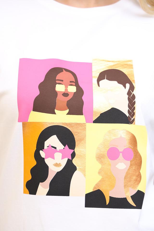 Эта стильная футболка от Penny Black станет отличным дополнением к вашему гардеробу. Футболка выполнена в белом цвете и украшена оригинальным принтом, изображающим четыре женских силуэта в ярких тонах.