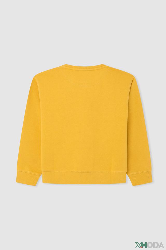 Дизайн джемпера лаконичный и универсальный: однотонный жёлтый цвет и круглый вырез горловины. На груди расположен логотип бренда Pepe Jeans London, выполненный в контрастном цвете, что добавляет стильности.