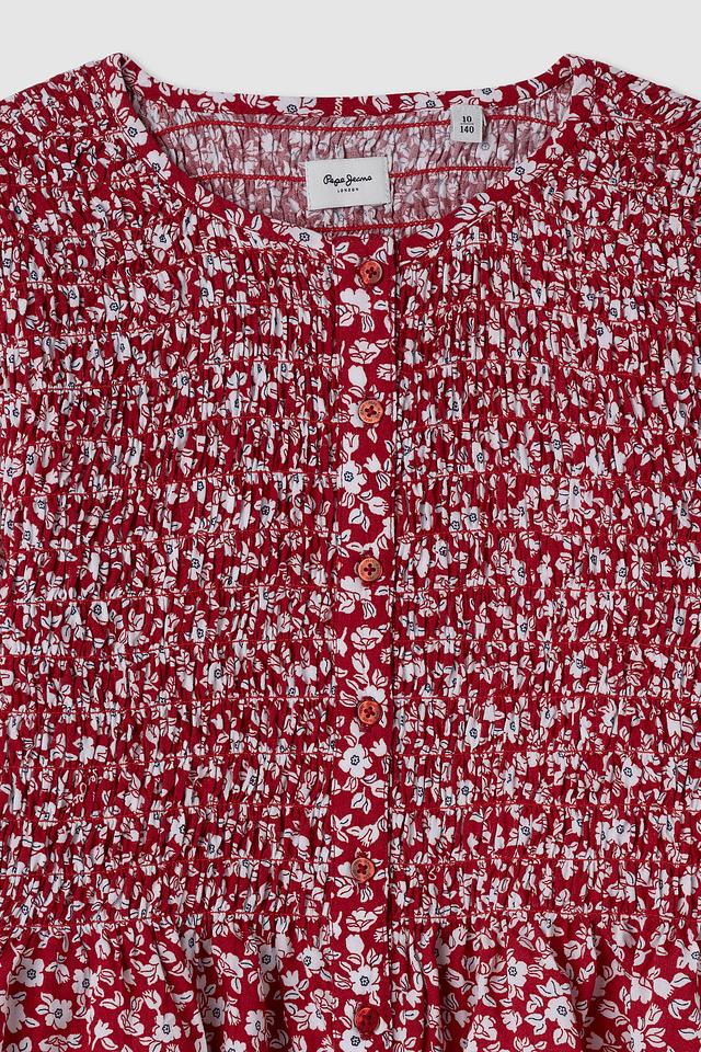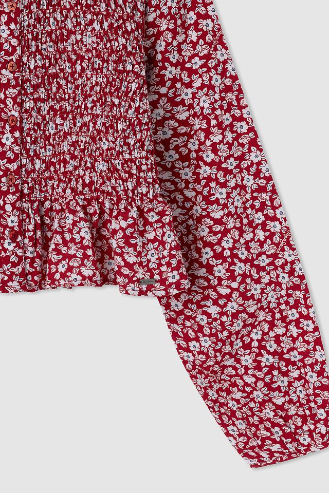 Стильная блузка Pepe Jeans London для девочки, выполненная в красном цвете с нежным цветочным принтом. Модель с длинными рукавами и сборками, обеспечивающими комфорт и свободу движений. Состав: вискоза 100%