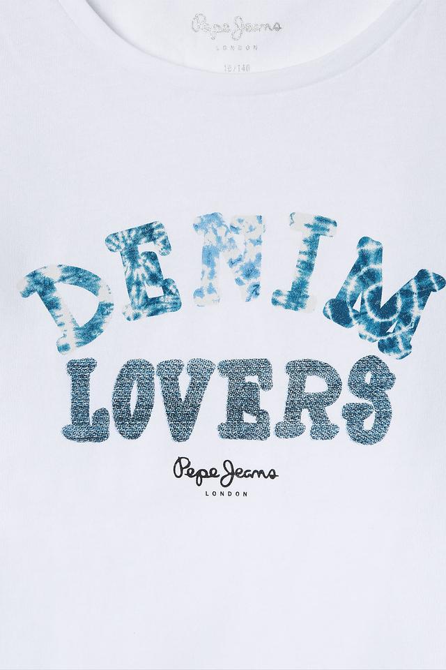 Эта стильная футболка от Pepe Jeans London станет отличным дополнением к гардеробу юной модницы. Футболка выполнена в белом цвете и украшена ярким принтом "Denim Lovers", выполненным в сине-голубых тонах.