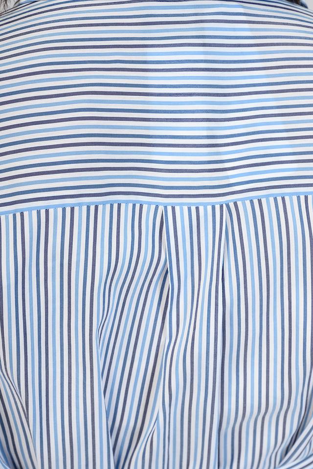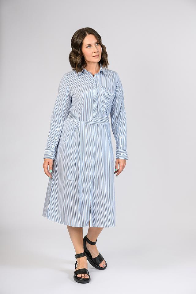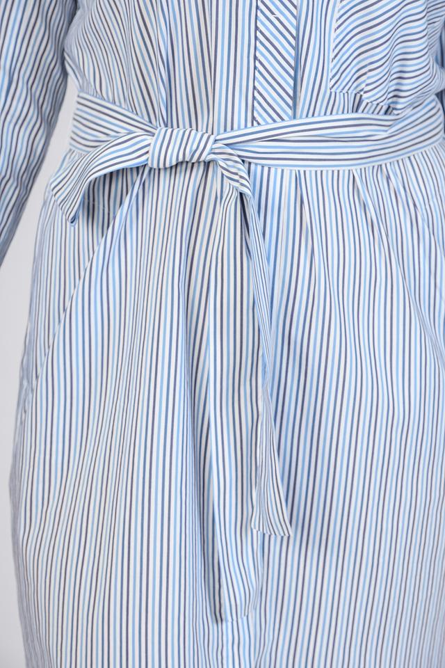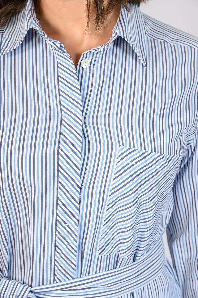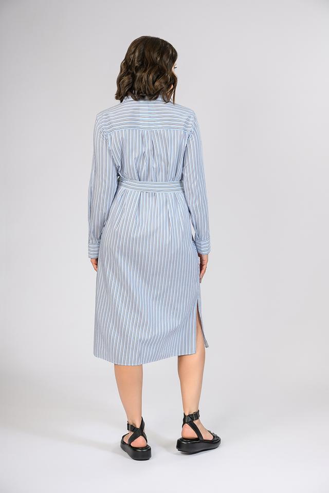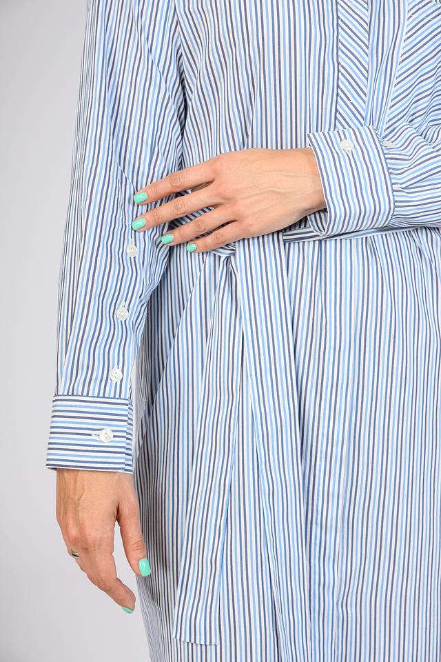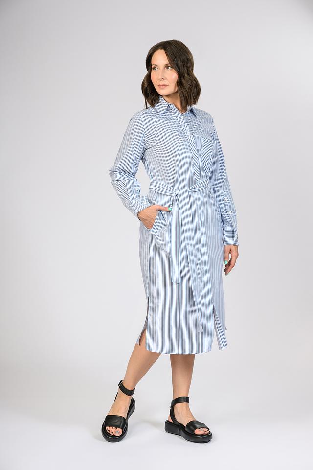 Платье Persona голубого цвета в вертикальную полоску – стильное и комфортное решение для повседневного образа. Модель выполнена из хлопка с добавлением вискозы, имеет рубашечный крой и завязывающийся пояс. Состав: хлопок 72%, вискоза 28%