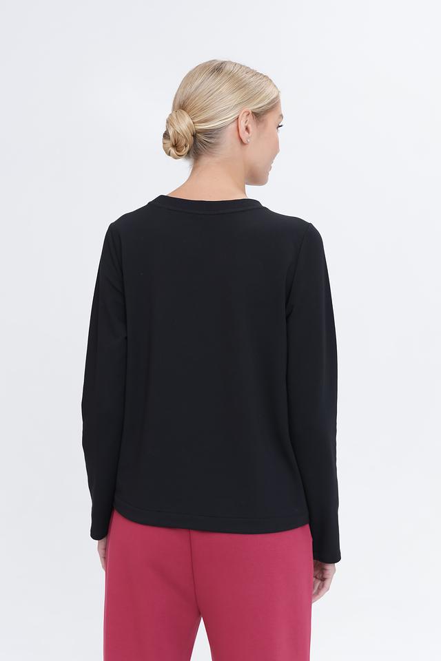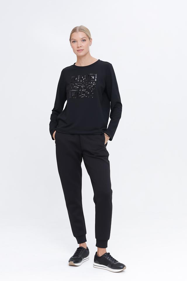 Чёрный пуловер Pezzo с оригинальным декором из страз станет стильным дополнением к вашему гардеробу. Модель выполнена из мягкого и приятного к телу трикотажа, обеспечивающего комфорт в носке. Состав: хлопок 47%, модал 47%, эластан 6%