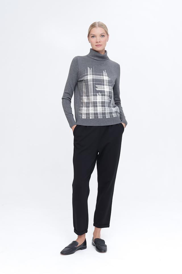 Брюки имеют прямой крой и зауженный книзу силуэт, что придает им современный вид. Эластичный пояс дополнен шнурком для регулировки посадки. Ткань состоит из нейлона (60%), вискозы (35%) и эластана (5%), что обеспечивает комфорт и свободу движений.
