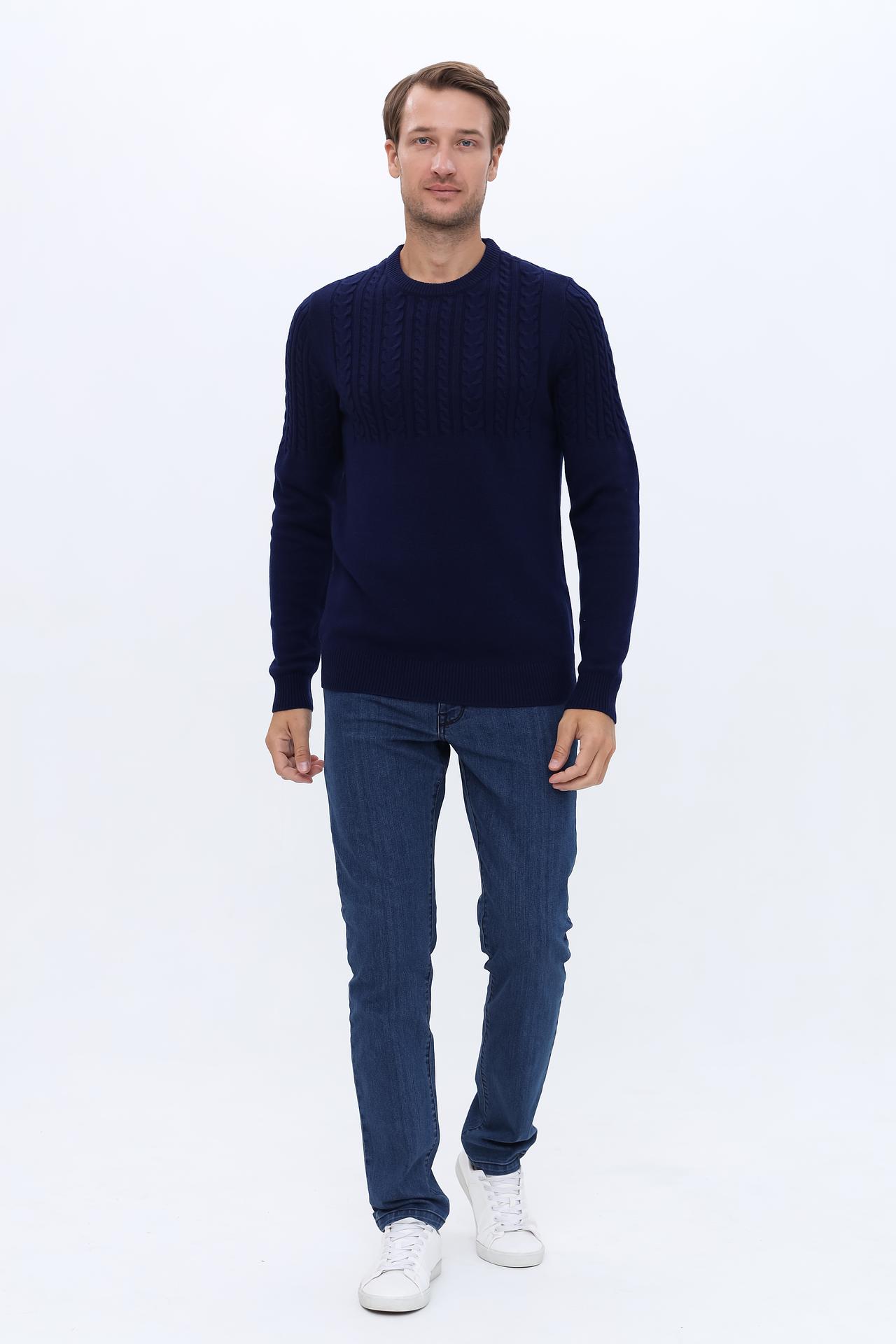 Классический мужской джемпер Pezzo глубокого синего цвета станет основой вашего гардероба. Эта стильная модель с круглым вырезом горловины выполнена из качественного комбинированного трикотажа и украшена рельефными вязаными узорами-"косами" на груди и верхней части рукавов, что придает изделию особую выразительность.