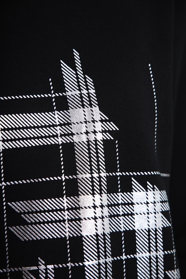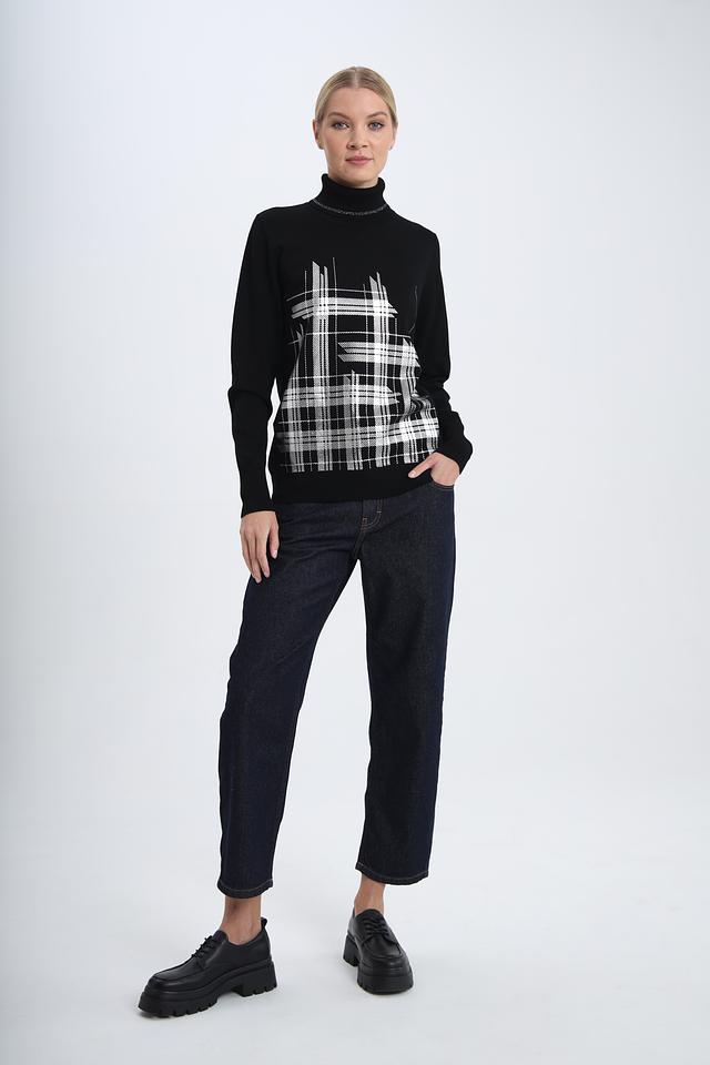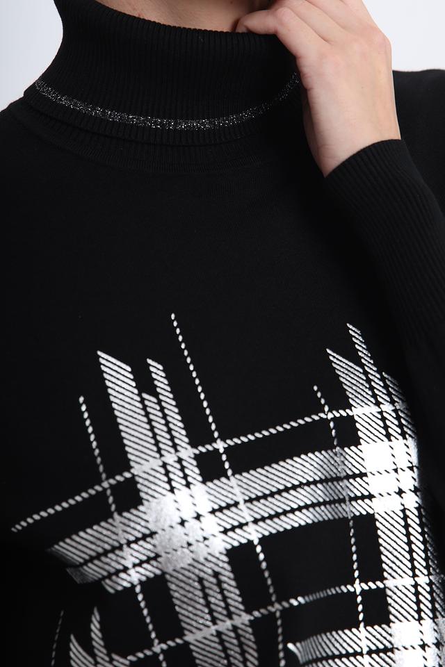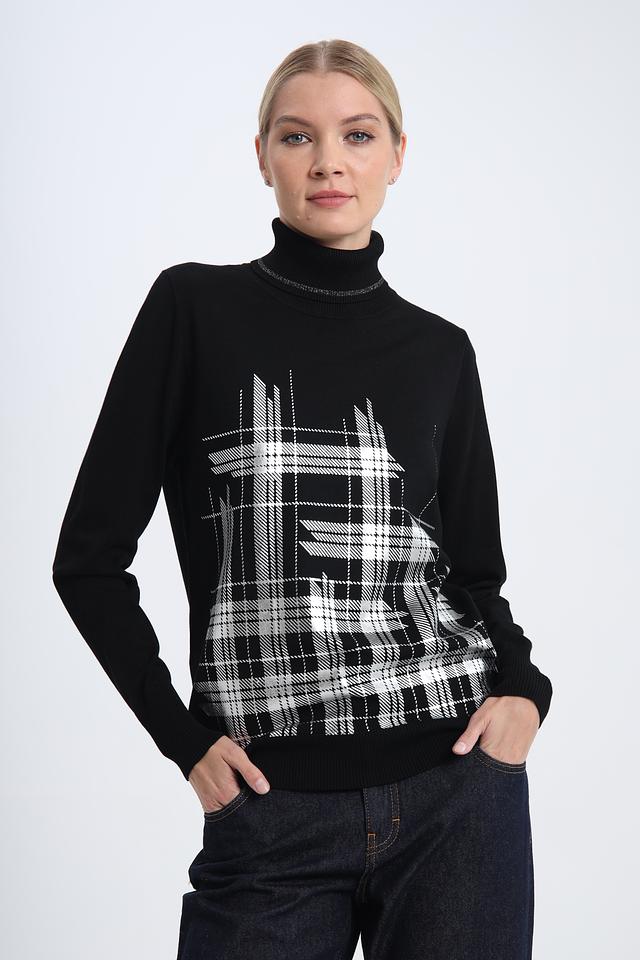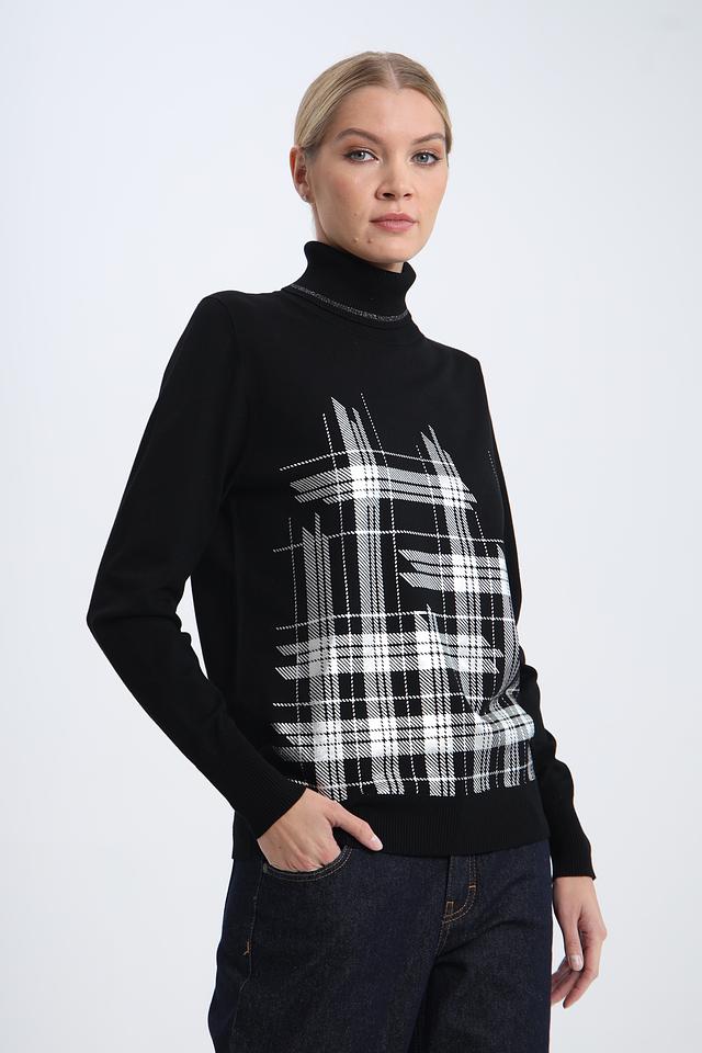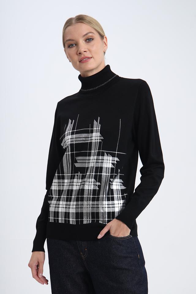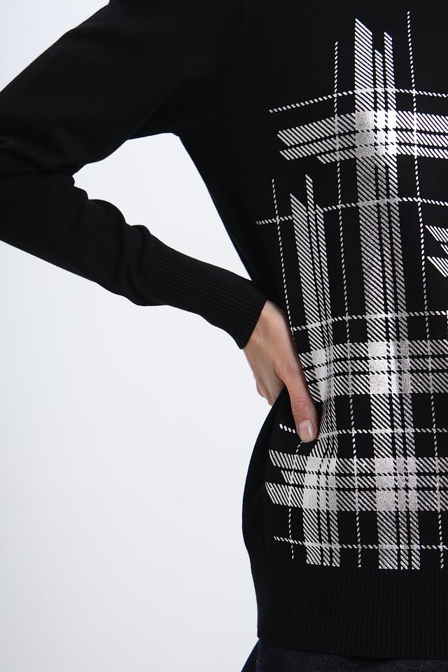 Этот стильный пуловер от Pezzo станет отличным дополнением к вашему гардеробу. Выполненный в классическом чёрном цвете, он украшен ярким геометрическим принтом в виде клетки, который придает образу динамичность и индивидуальность.