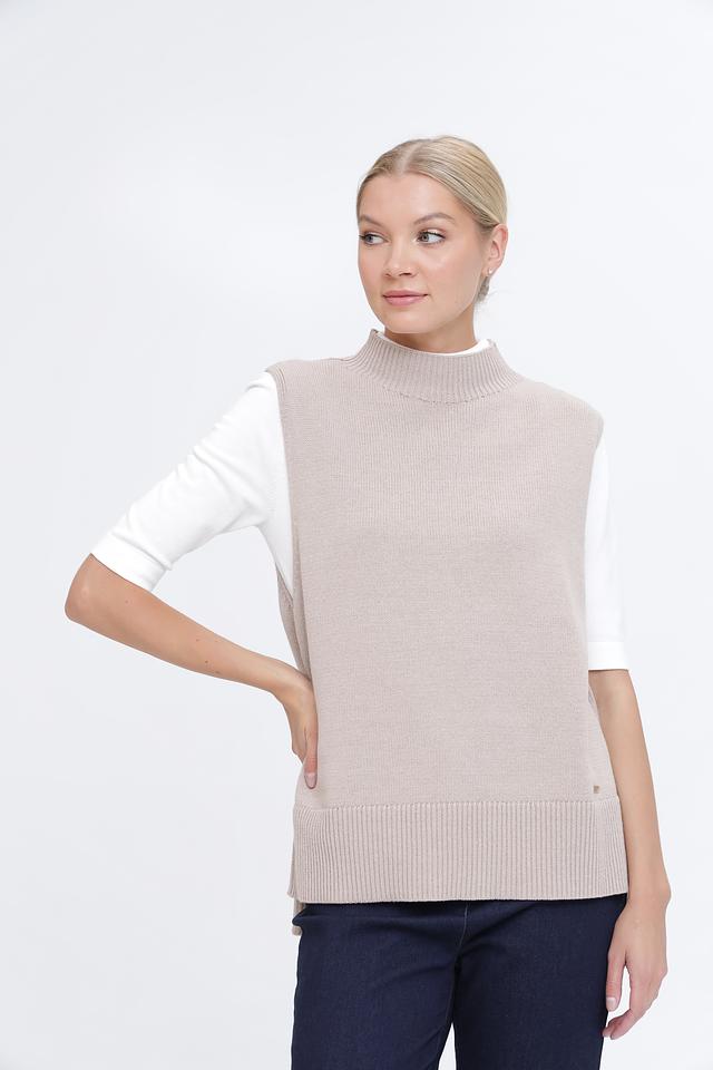 Бежевый жилет Pezzo – это стильный и универсальный элемент гардероба. Выполнен из мягкого трикотажа с добавлением акрила, имеет удобный воротник-стойку и боковые разрезы. Состав: хлопок 60%, акрил 40%
