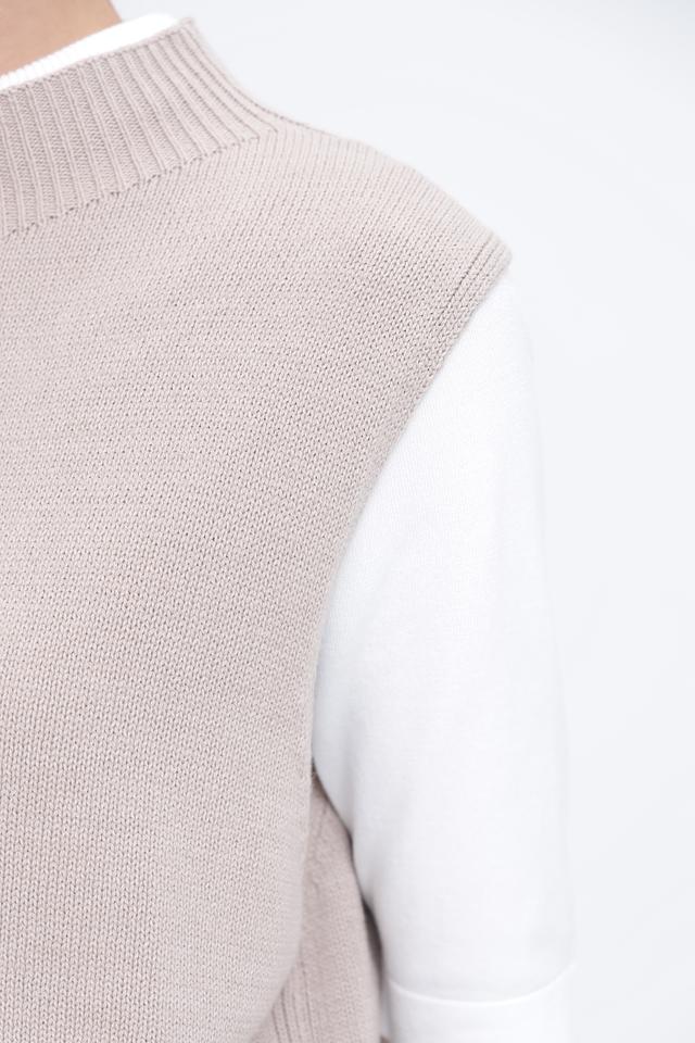 Жилет изготовлен из качественного трикотажа, состоящего из 60% хлопка и 40% акрила. Это сочетание обеспечивает комфорт, мягкость и практичность в носке. Воротник-стойка добавляет элегантности, а боковые разрезы обеспечивают свободу движений.