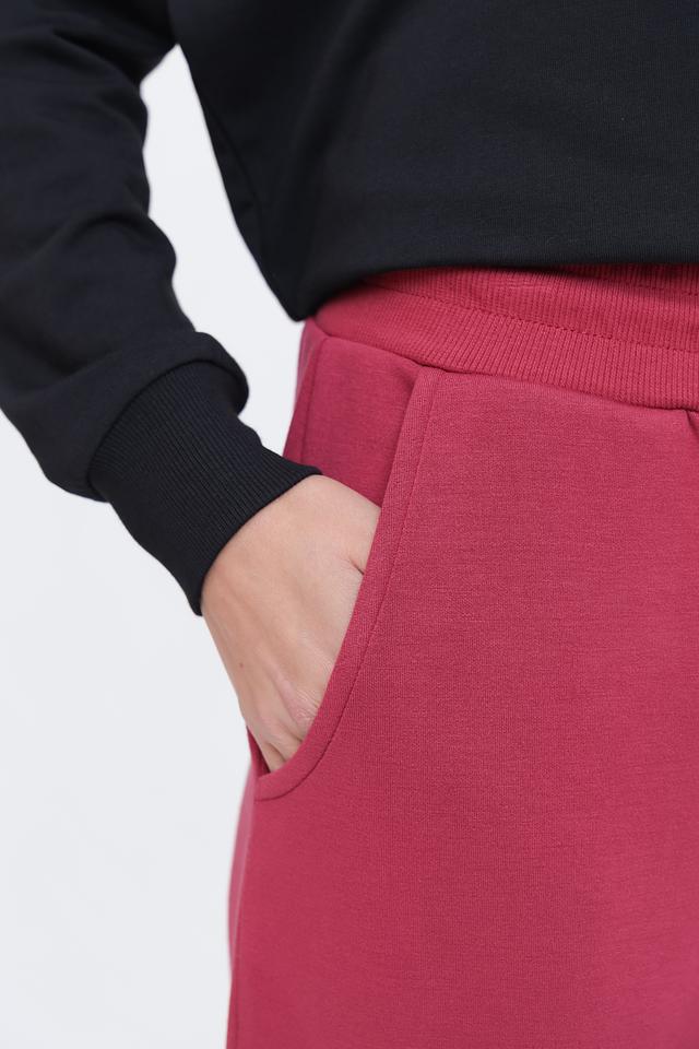 Спортивные брюки Pezzo малинового цвета — удобная и стильная модель для повседневной носки. Брюки выполнены из мягкого трикотажа с добавлением вискозы и эластана, обеспечивающего комфорт и свободу движений. Модель дополнена эластичным поясом с кулиской. Состав: полиэстер 49%, вискоза 46%, эластан 5%
