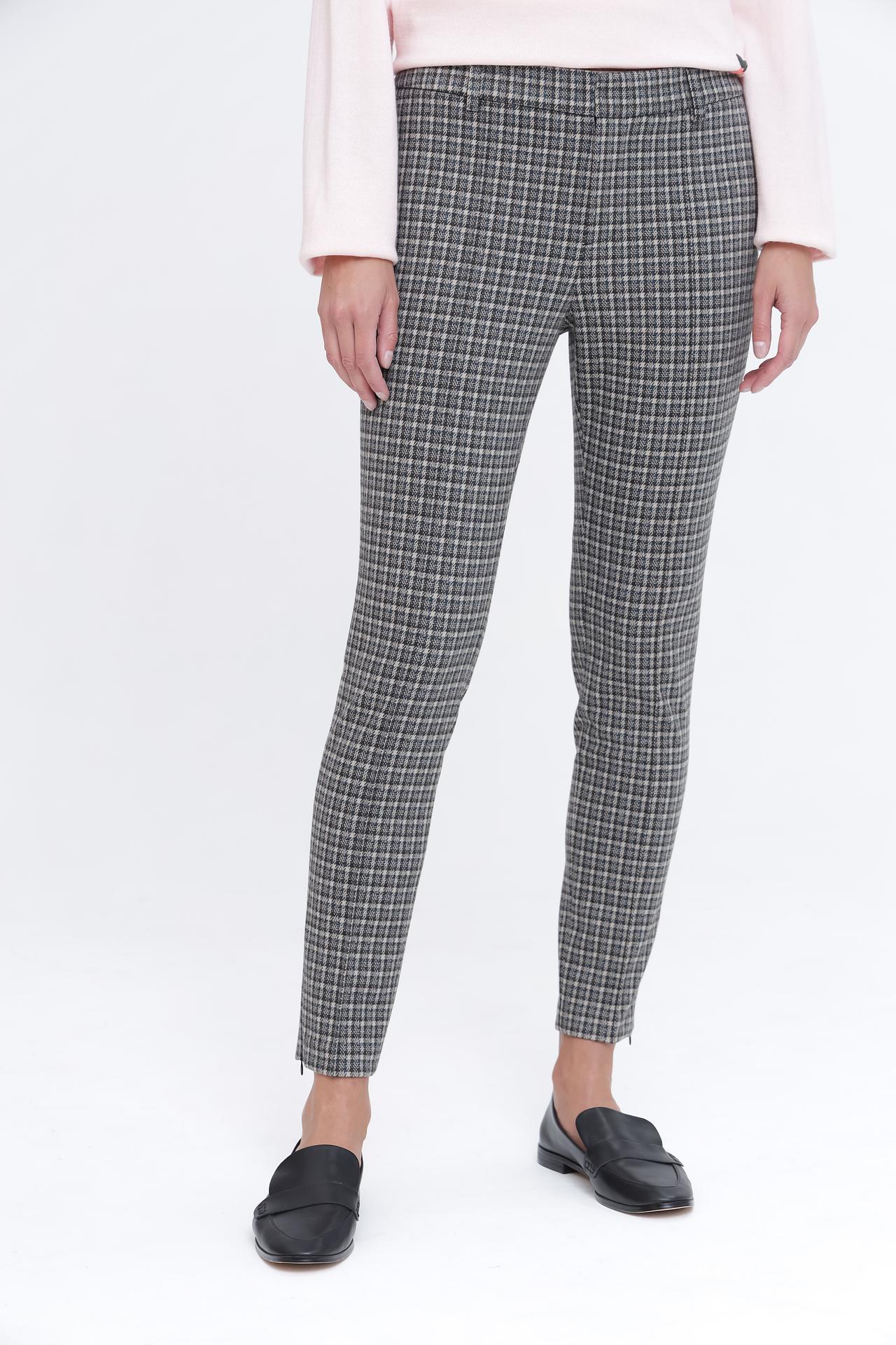 - Дизайн в клетку: Классический узор «клетка» придает брюкам элегантность и подходит для деловых и повседневных нарядов. Этот принт всегда актуален и легко вписывается в любой гардероб.
