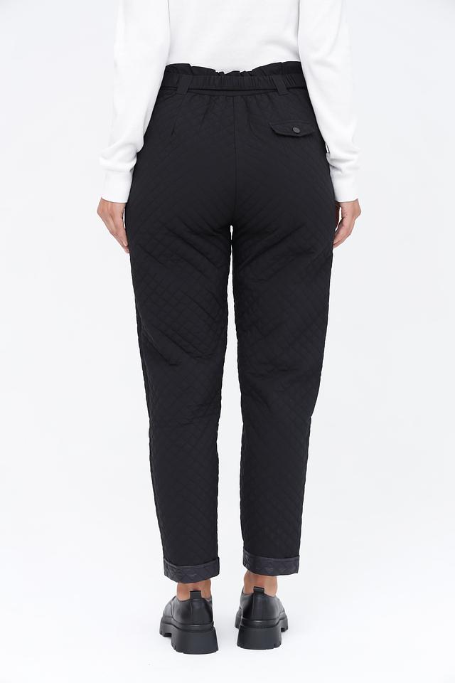 Представляем элегантные брюки от бренда Pezzo. Эта модель выполнена в классическом черном цвете и отличается оригинальной стеганой текстурой, которая придает изделию особый шарм.