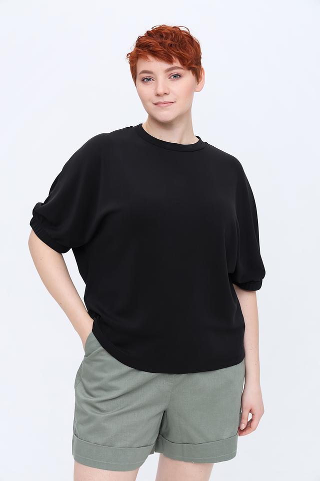 Модель имеет свободный крой, который обеспечивает комфорт и свободу движений. Короткие рукава и округлый вырез горловины придают футболке лаконичный и стильный вид. Рукава слегка спущены и имеют небольшую сборку по плечу.
