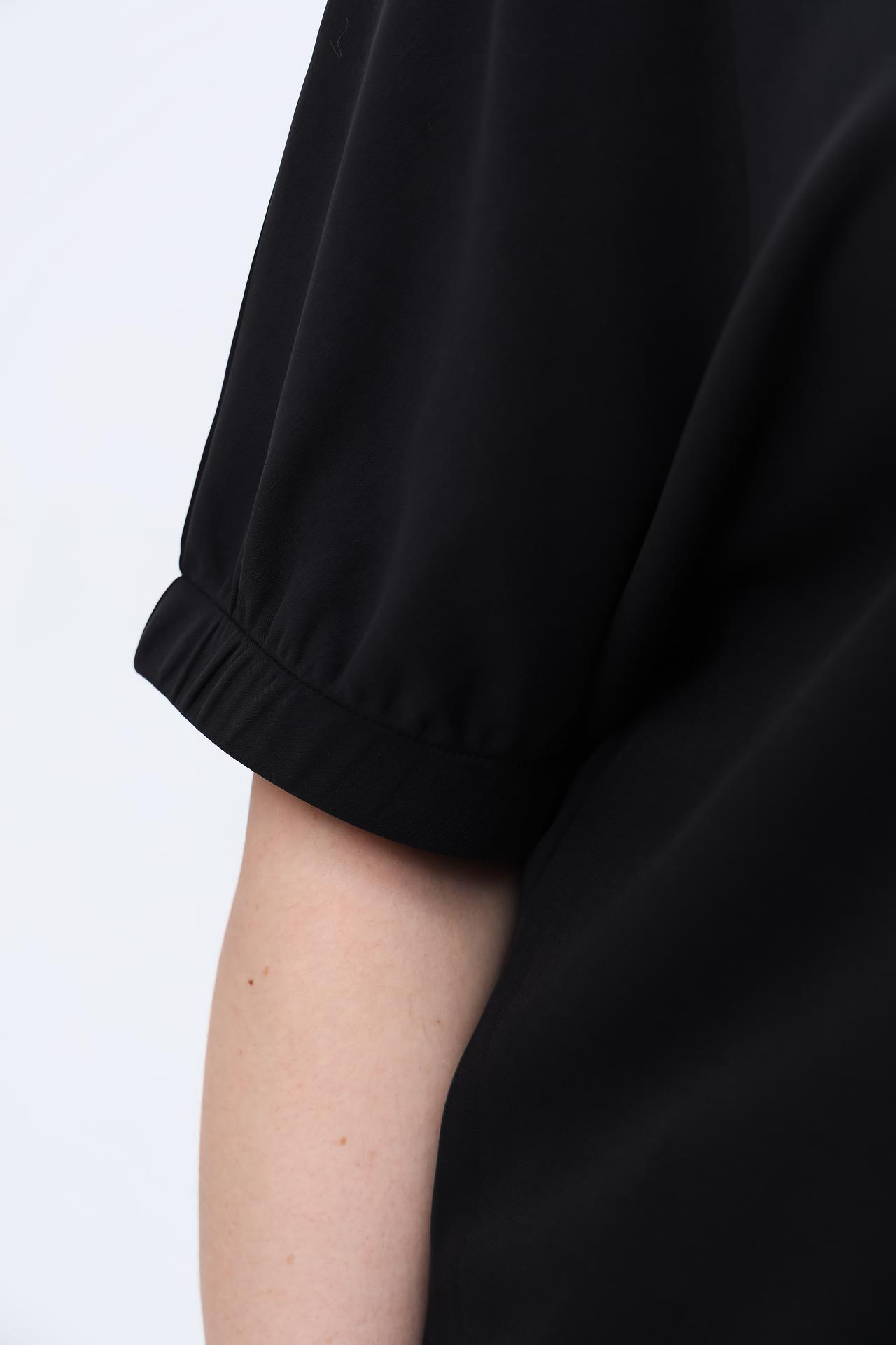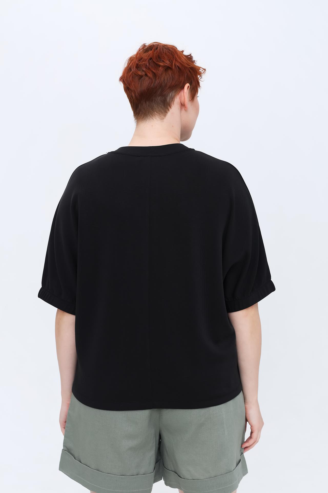 Базовая чёрная футболка Pezzo - идеальный выбор для создания непринужденных и стильных образов на каждый день. Модель свободного кроя с укороченными рукавами обеспечивает комфорт и свободу движений, а элегантная отделка рукавов добавляет изюминку. Благодаря универсальному дизайну, футболка легко сочетается с различными элементами гардероба, от джинсов до юбок.