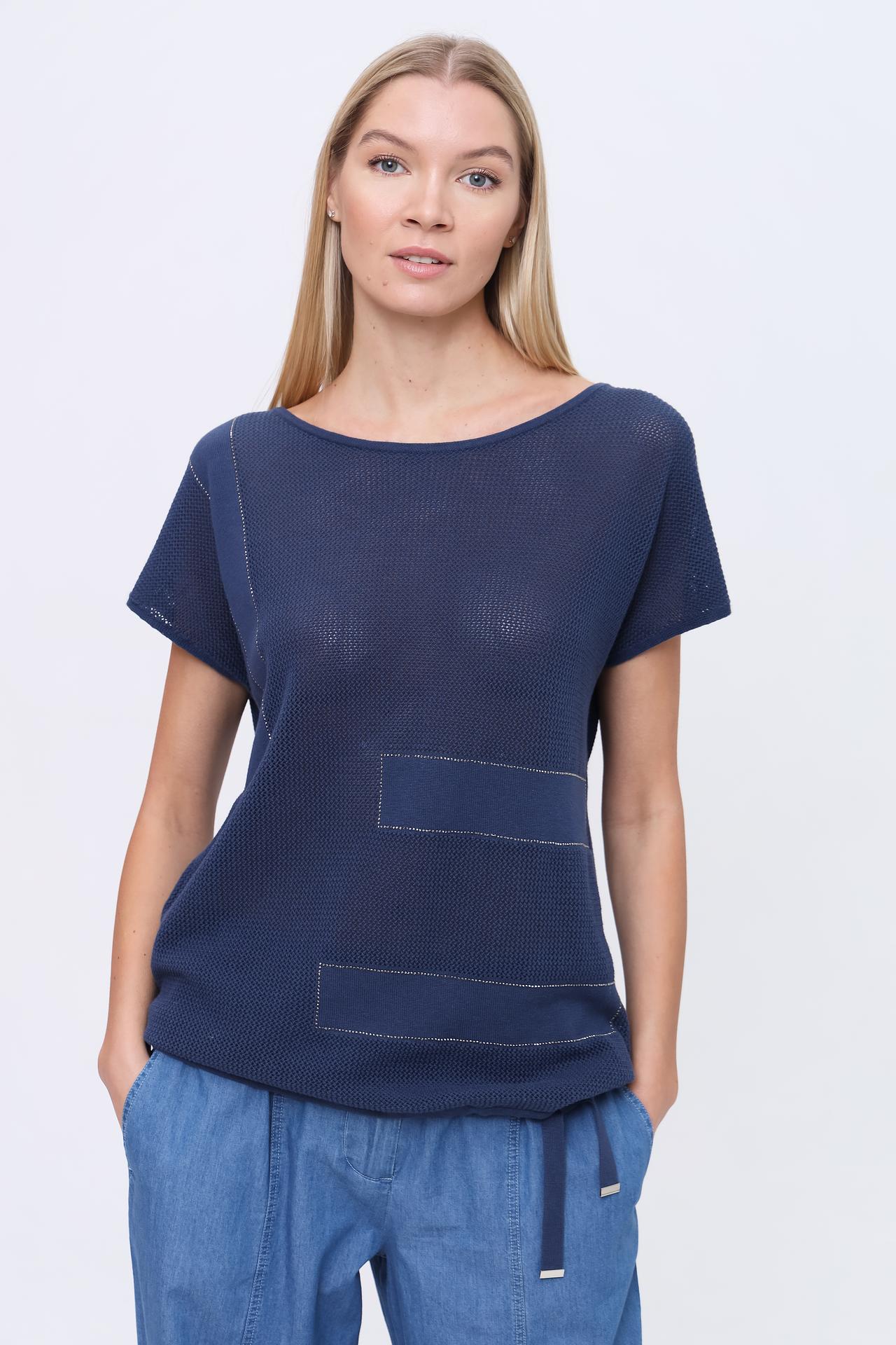 Пуловер Pezzo синий с декоративными вставками и люрексом