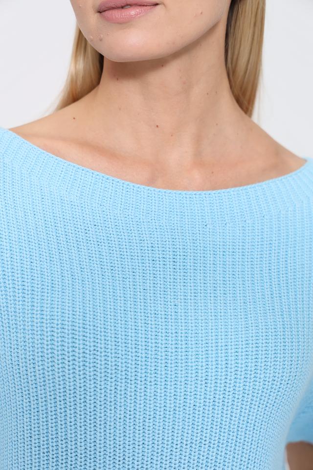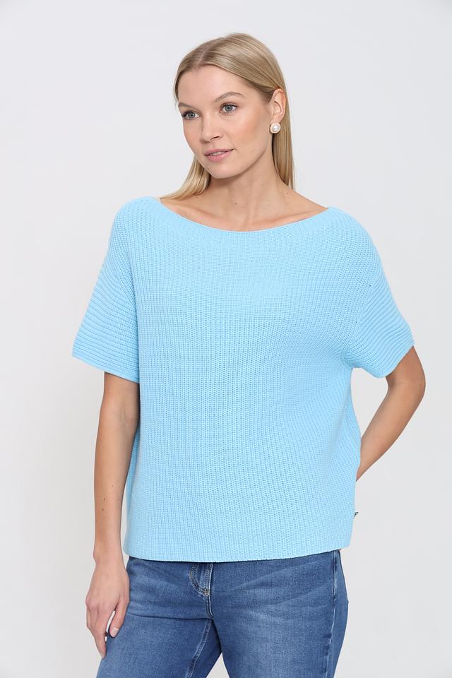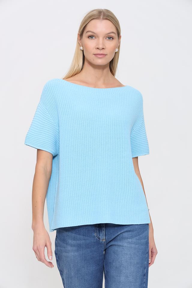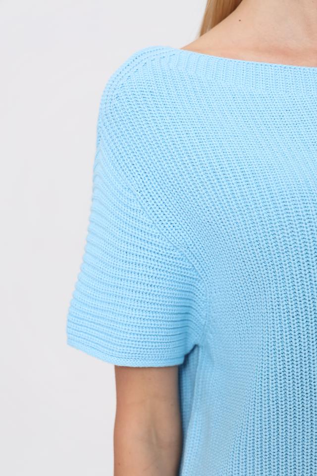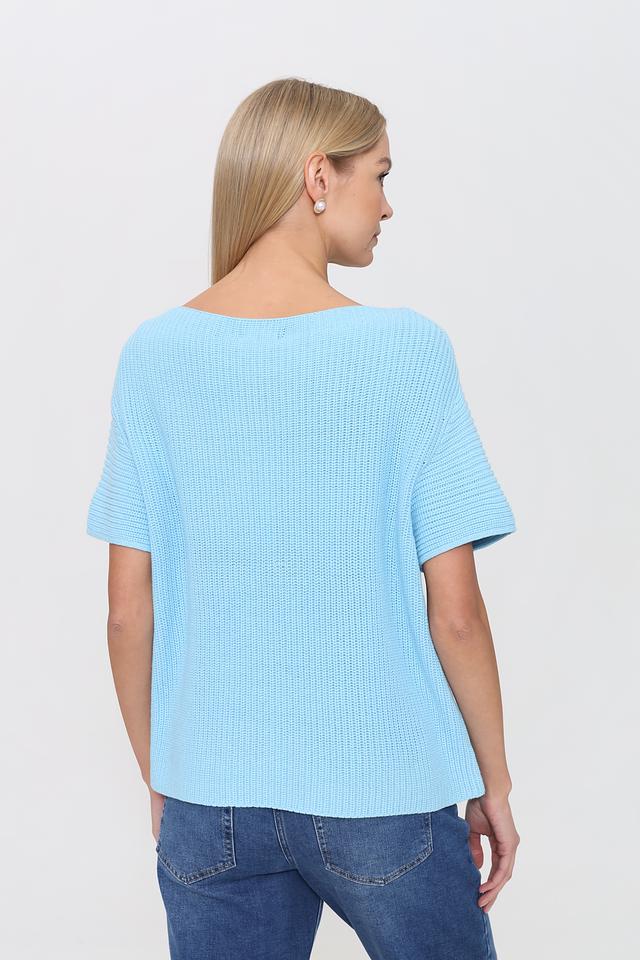 Женский пуловер Pezzo голубого цвета с коротким рукавом и округлым вырезом. Изготовлен из мягкого трикотажа с рельефной текстурой, идеально подходит для создания комфортных и стильных образов. Состав: Состав_подкладка хлопок 60%, акрил 40%