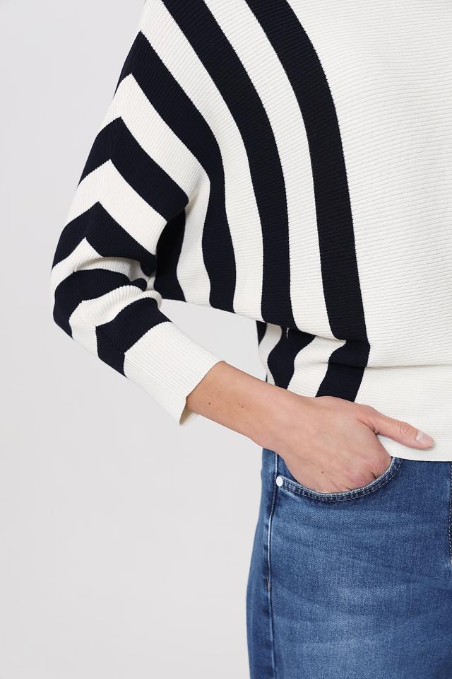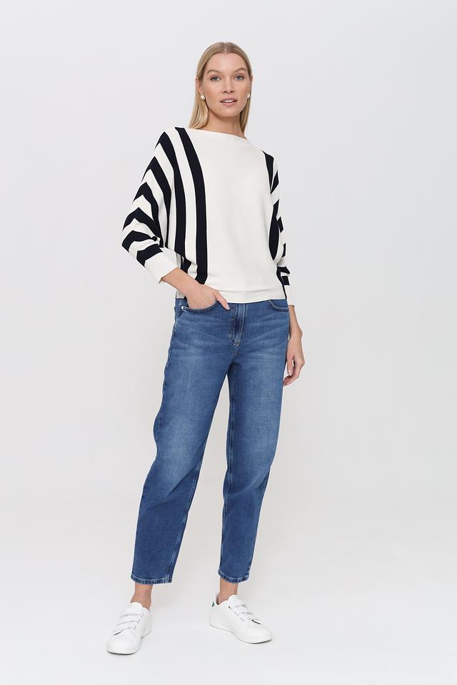 Этот пуловер от Pezzo – идеальный выбор для создания стильного и комфортного образа. Пуловер выполнен в белом цвете с выразительными чёрными полосами, которые придают ему динамичный и современный вид.