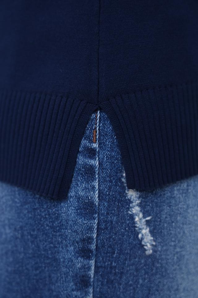 Синий пуловер Pezzo с вертикальной декоративной полосой из страз – стильное и комфортное решение для повседневного образа. Изготовлен из мягкой вискозы с добавлением нейлона, что обеспечивает приятные тактильные ощущения и хорошую посадку. Состав: вискоза 80%, нейлон 20%