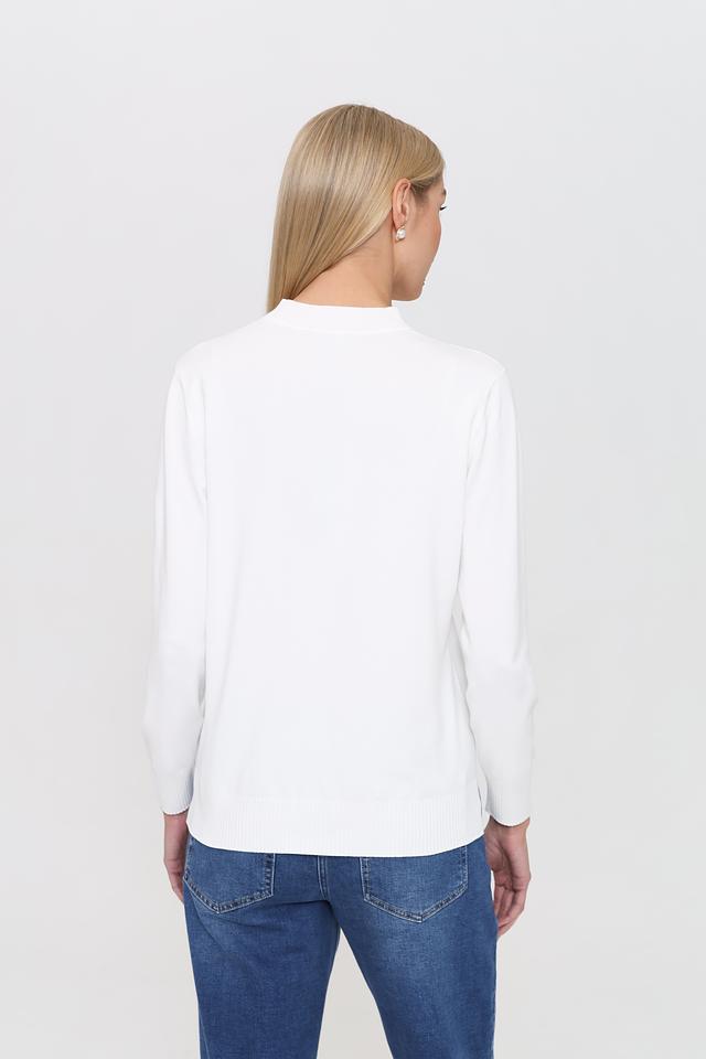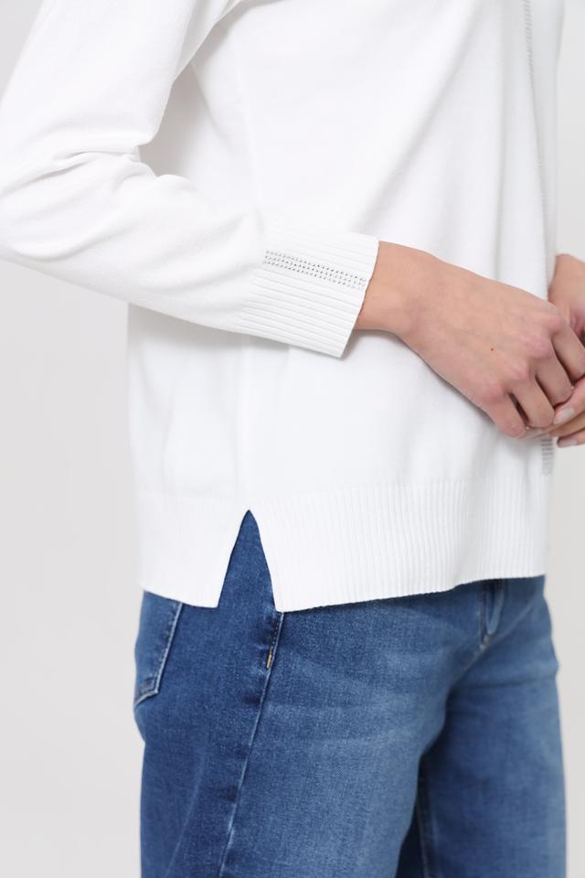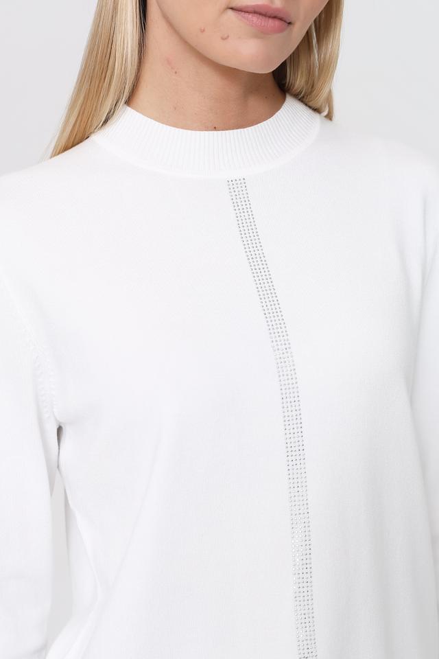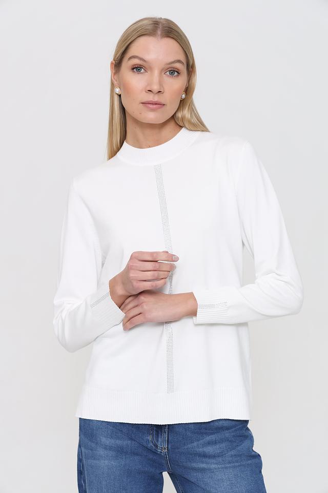 Белый пуловер Pezzo с длинными рукавами и вертикальной линией декора из страз. Изготовлен из мягкой вискозы с добавлением нейлона для большей износостойкости. Стильный и комфортный выбор для повседневного гардероба. Состав: вискоза 80%, нейлон 20%