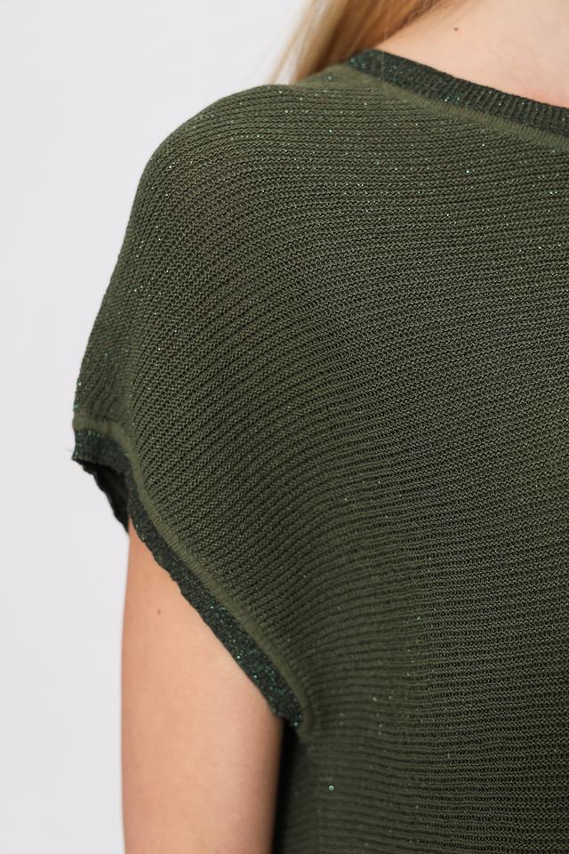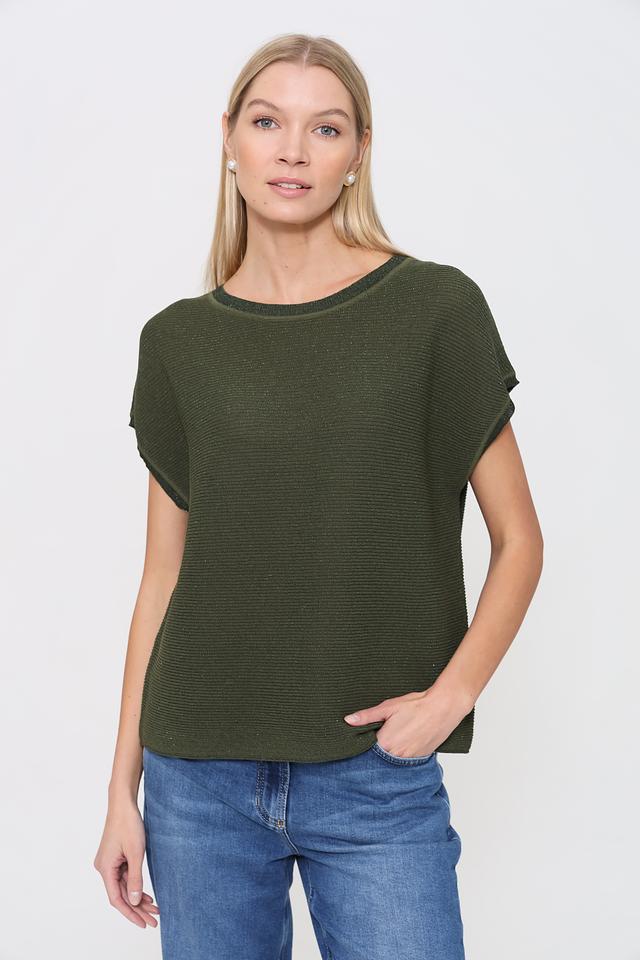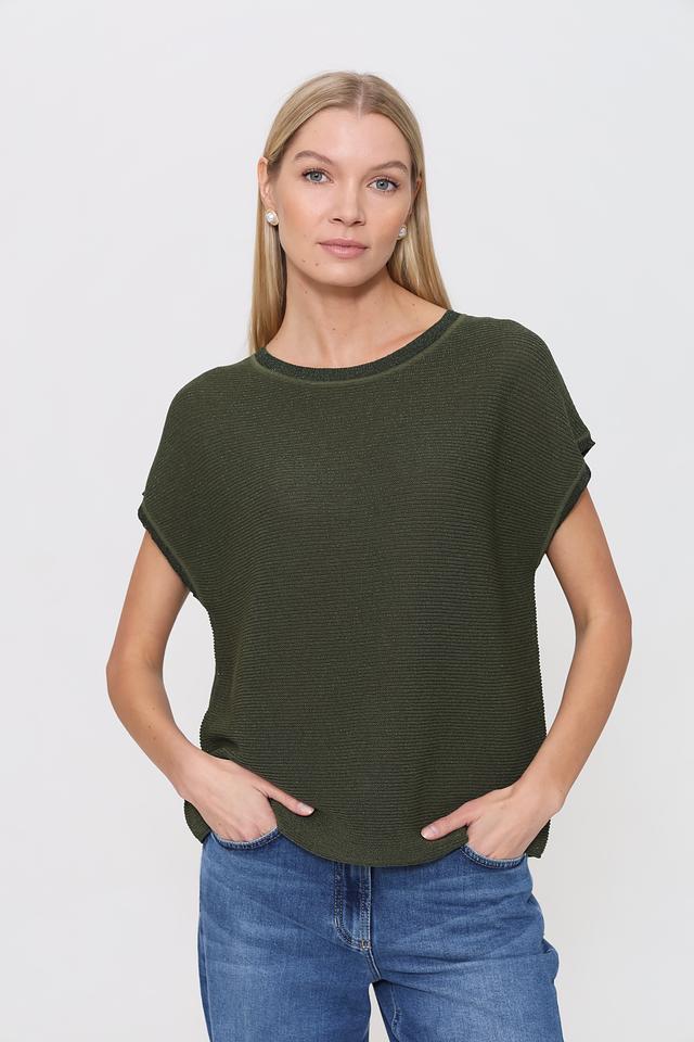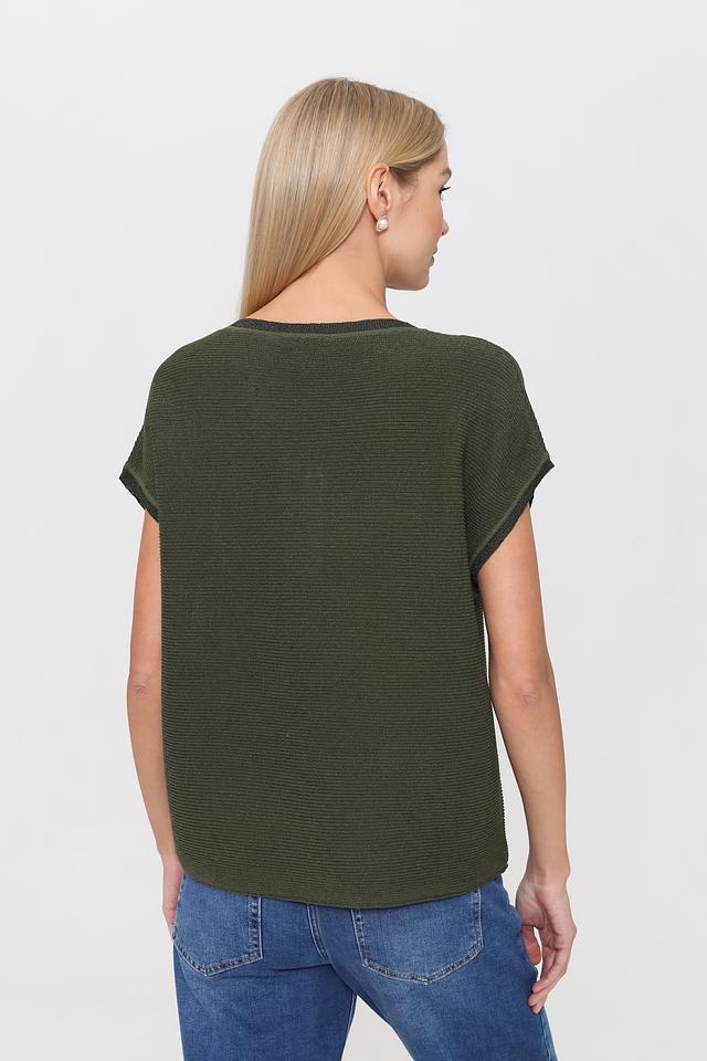 Женский пуловер Pezzo хаки с рукавами 3/4 и текстурной вязкой. Модель имеет круглый вырез горловины и небольшую сборку по плечам, что придает ей более женственный силуэт. Изготовлен из мягкого и приятного к телу сочетания вискозы, нейлона и полиэстера. Состав: вискоза 76%, нейлон 10%, полиэстер 9%, металл 5%