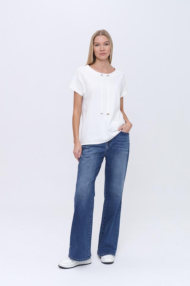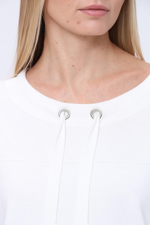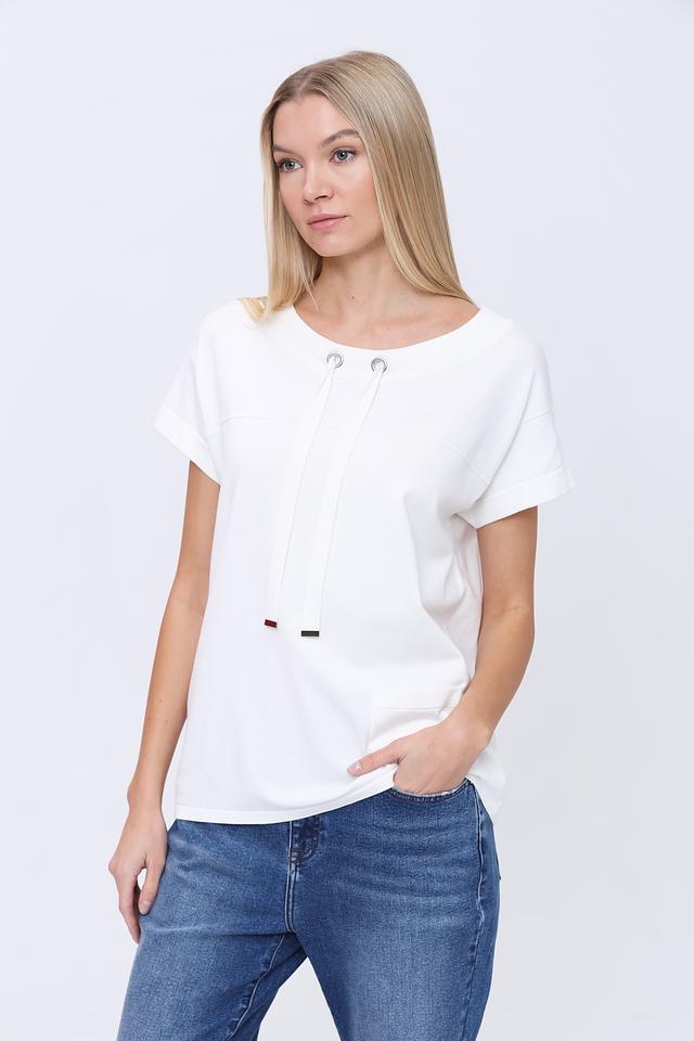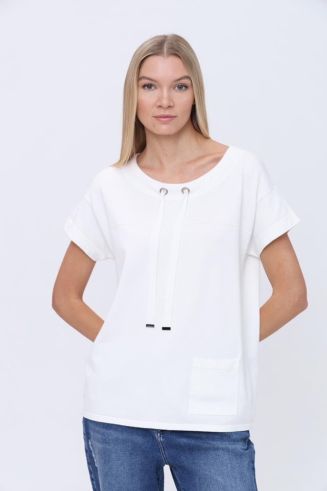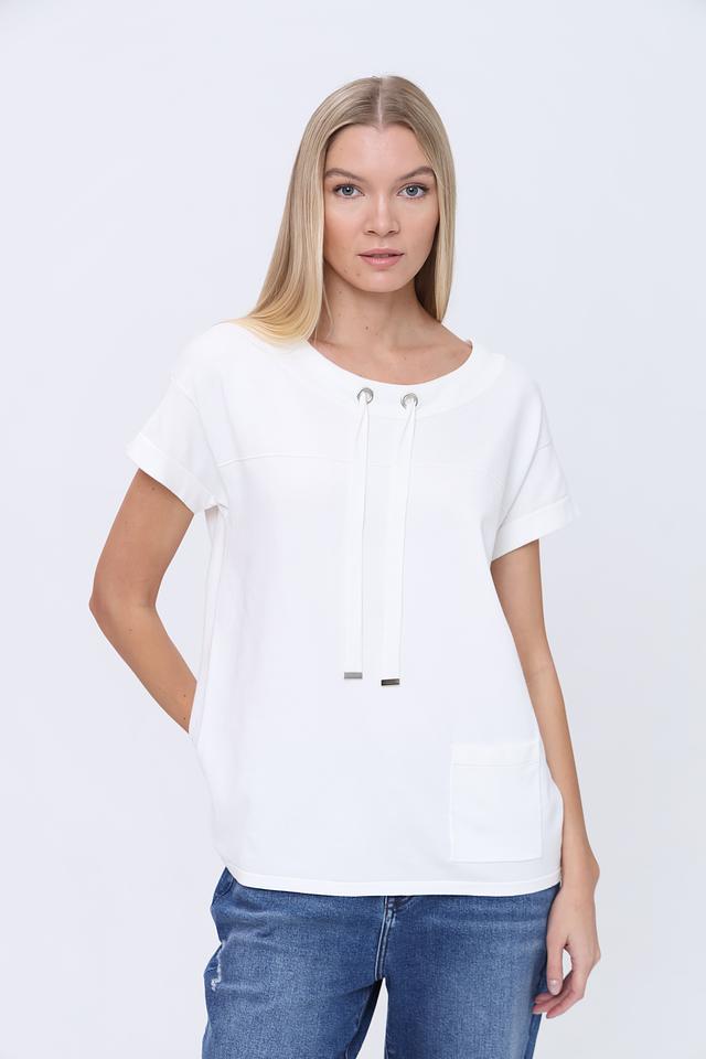 Белый пуловер Pezzo свободного кроя с короткими рукавами и декоративными шнурками на вырезе. Изготовлен из мягкой вискозы с добавлением нейлона для большей износостойкости. Стильный и комфортный выбор для повседневного образа. Состав: вискоза 80%, нейлон 20%