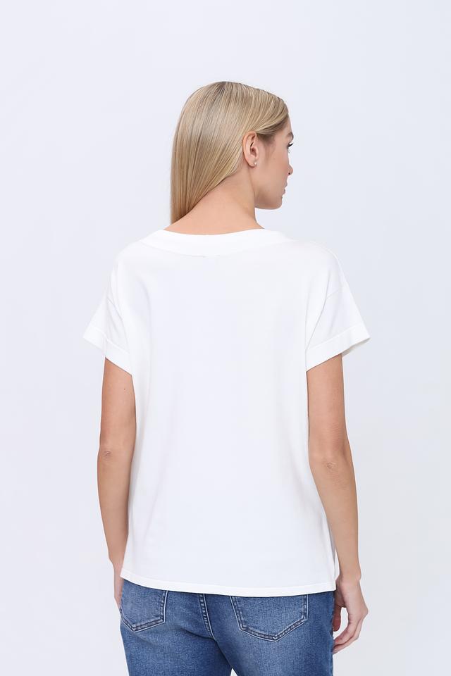 Модель имеет свободный крой, который не сковывает движений и обеспечивает максимальный комфорт. Короткие рукава делают этот пуловер отличным вариантом для теплой погоды.