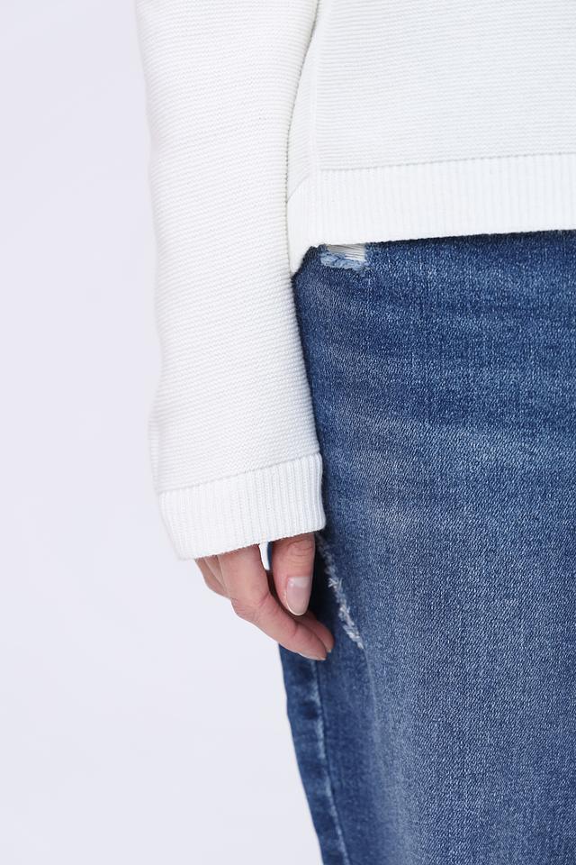 Состав ткани – 60% хлопок и 40% акрил. Хлопок обеспечивает мягкость и воздухопроницаемость, а акрил – долговечность и устойчивость к деформации. Пуловер приятен к телу и прост в уходе.