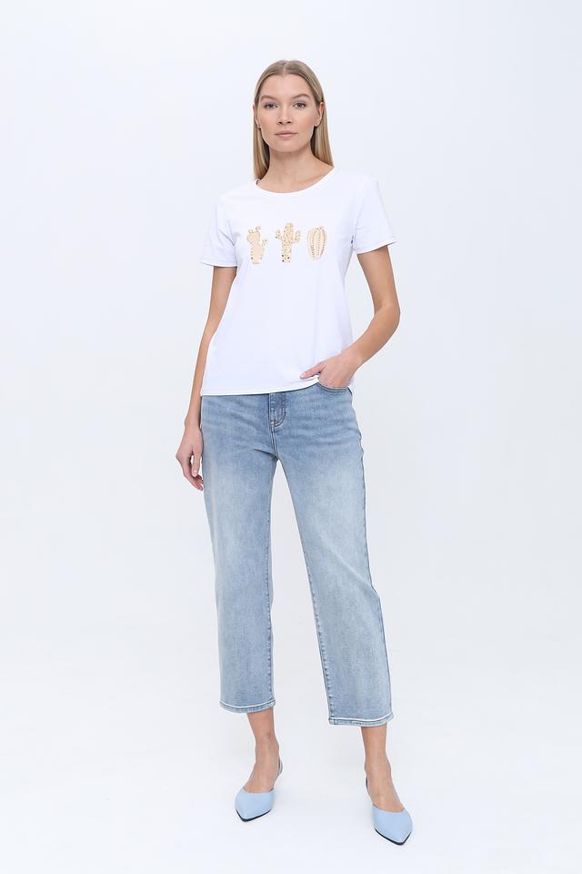 Белая футболка Pezzo с оригинальным принтом в виде кактусов, выполненная из мягкого хлопка с добавлением эластана. Стильный и комфортный выбор для повседневного образа. Состав: хлопок 95%, эластан 5%
