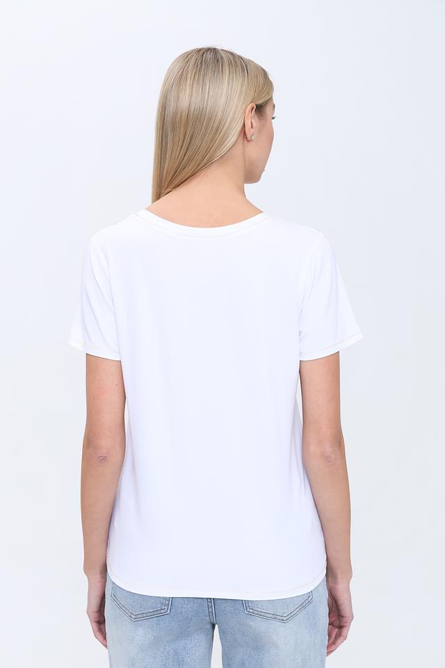 Футболка имеет классический крой, круглый вырез горловины и короткие рукава. Она идеально подходит для создания повседневных образов, а также для активного отдыха. Состав: 95% хлопок, 5% эластан.