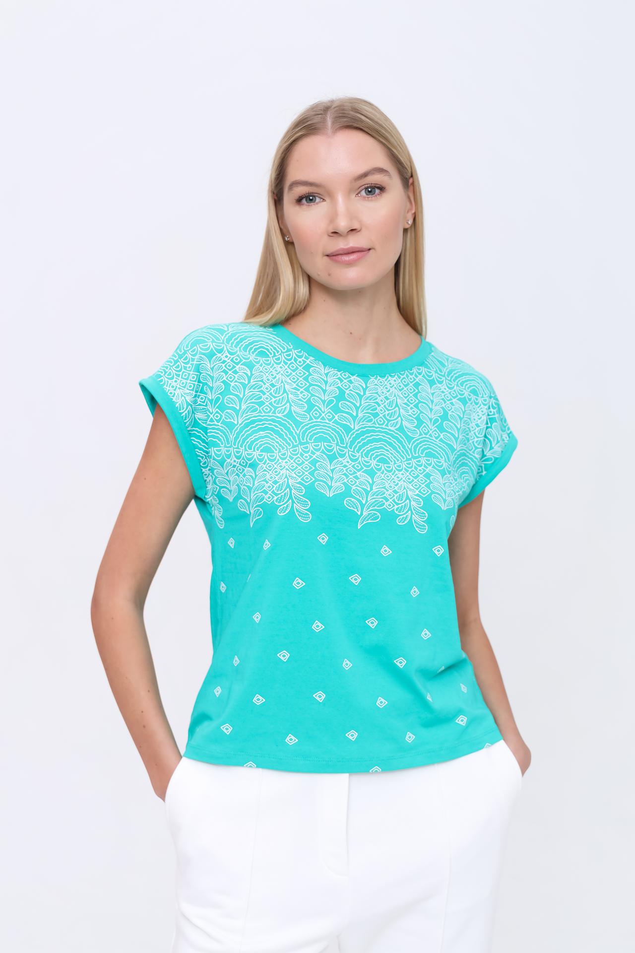 Эта женская футболка идеально подходит для создания повседневных образов. Ее можно сочетать с джинсами, шортами или юбками, создавая различные стильные комбинации. Хлопковая футболка – это незаменимая вещь в гардеробе каждой современной женщины.