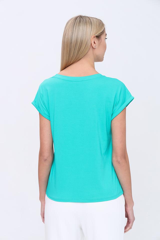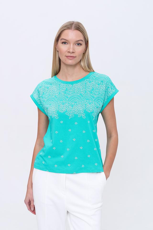 Эта футболка от Pezzo выполнена в приятном бирюзовом цвете и украшена изысканной вышивкой на плечах. Вышивка выполнена в белых тонах и создает эффектный контраст с основным цветом изделия.