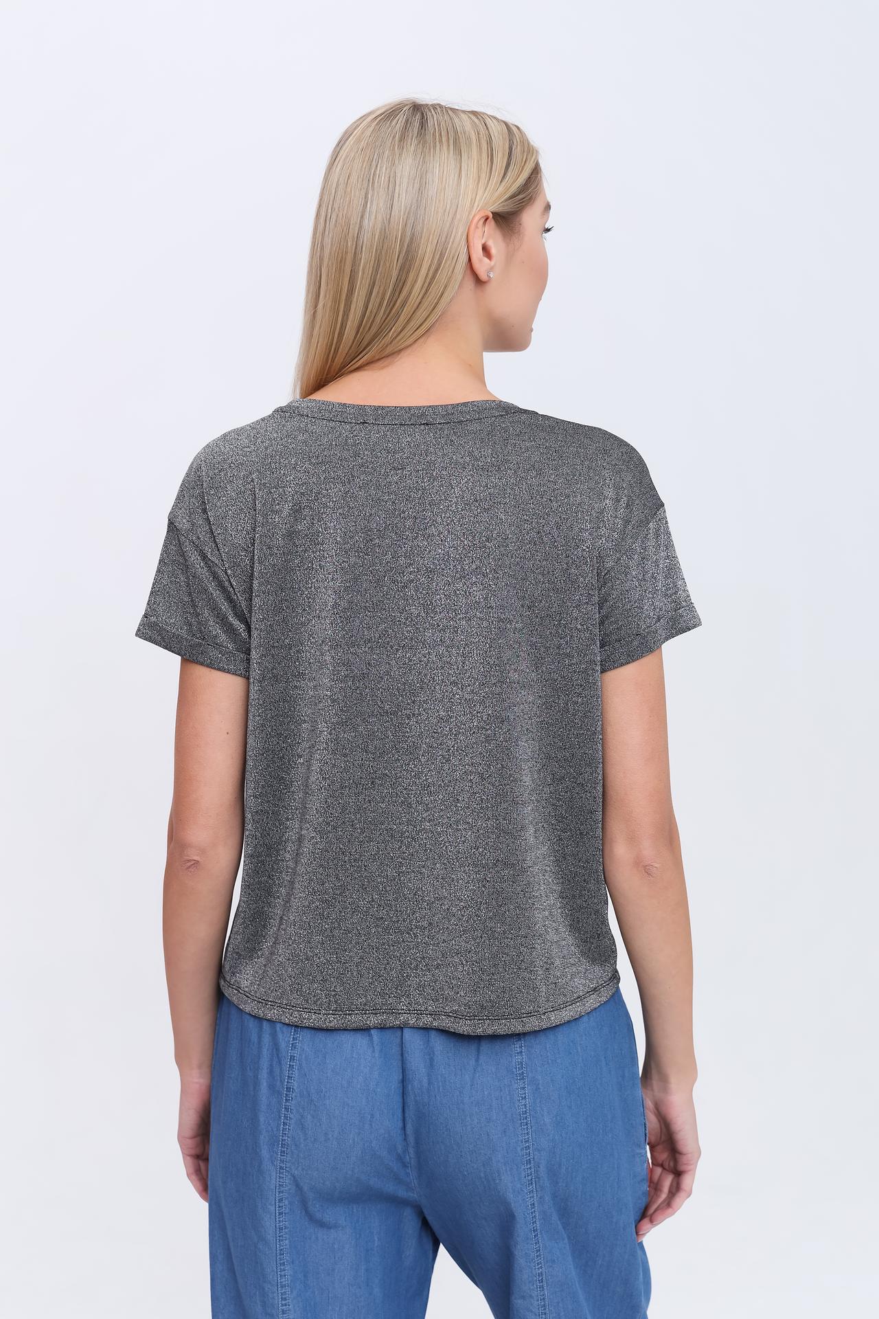 Стильная серебристая футболка от Pezzo, выполненная из смесового материала с добавлением вискозы, эластана и металла. Идеальный вариант для создания трендовых повседневных образов.