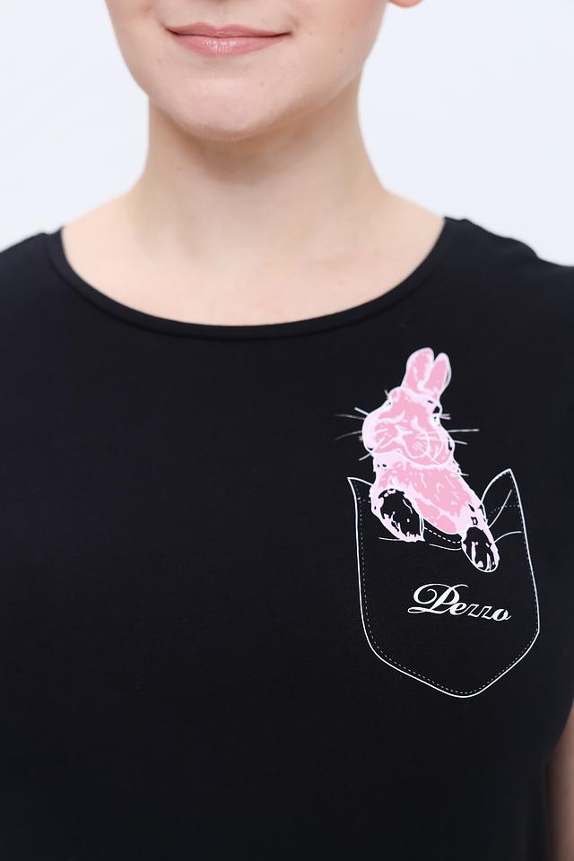 Чёрная футболка Pezzo с оригинальным принтом в виде зайчика на кармане. Изготовлена из мягкого хлопка с добавлением эластана для комфорта и свободы движений. Стильный и удобный вариант для повседневного образа. Состав: хлопок 95%, эластан 5%