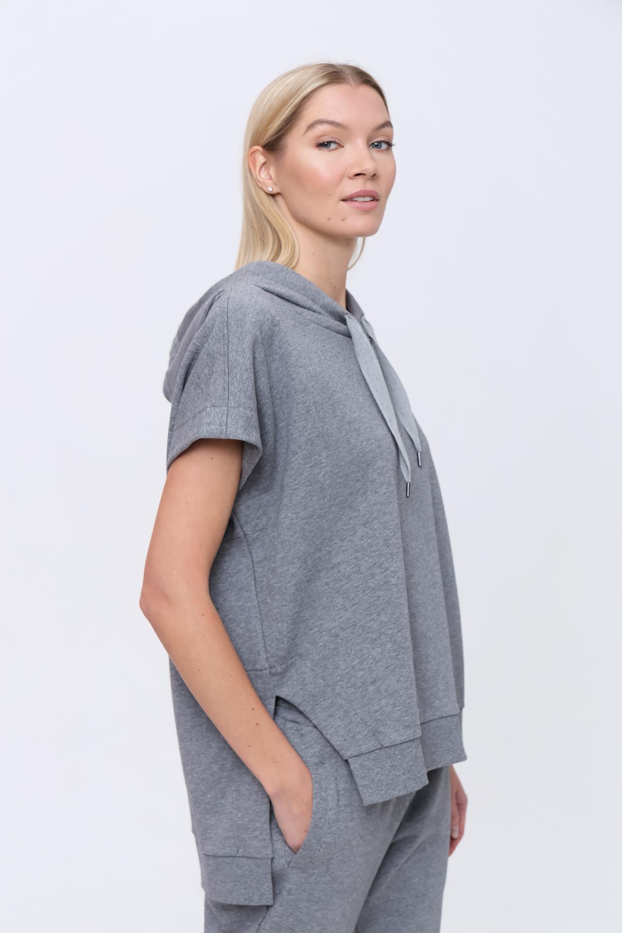 - Дизайн: Современный силуэт с укороченными рукавами и капюшоном. Асимметричный низ с разрезами по бокам обеспечивает свободу движений и добавляет изюминку в образ.