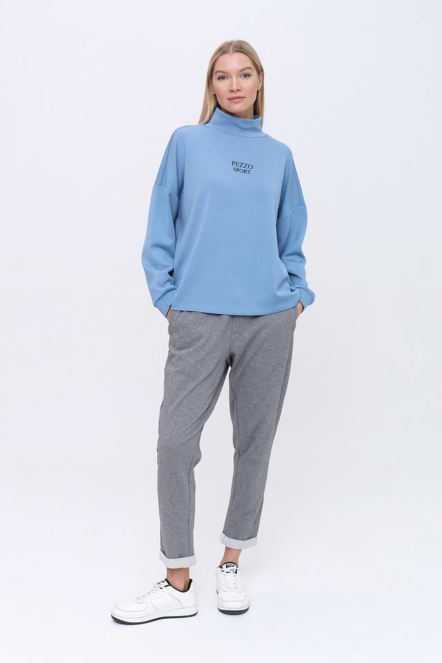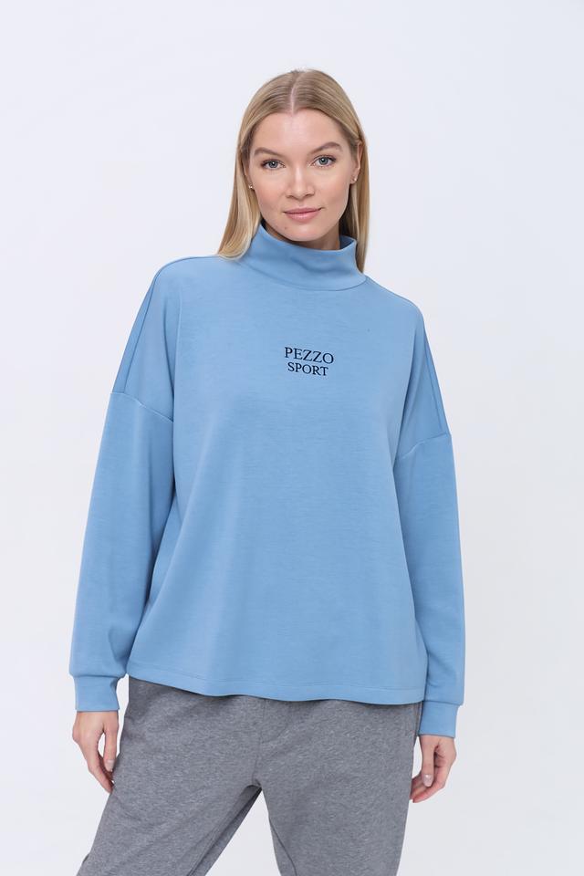 Голубой пуловер Pezzo Sport с высоким воротом – это стильное и комфортное решение для повседневного гардероба. Модель выполнена из мягкого и приятного к телу материала, обеспечивающего удобство в носке. Состав: модал 51%, полиэстер 44%, эластан 5%