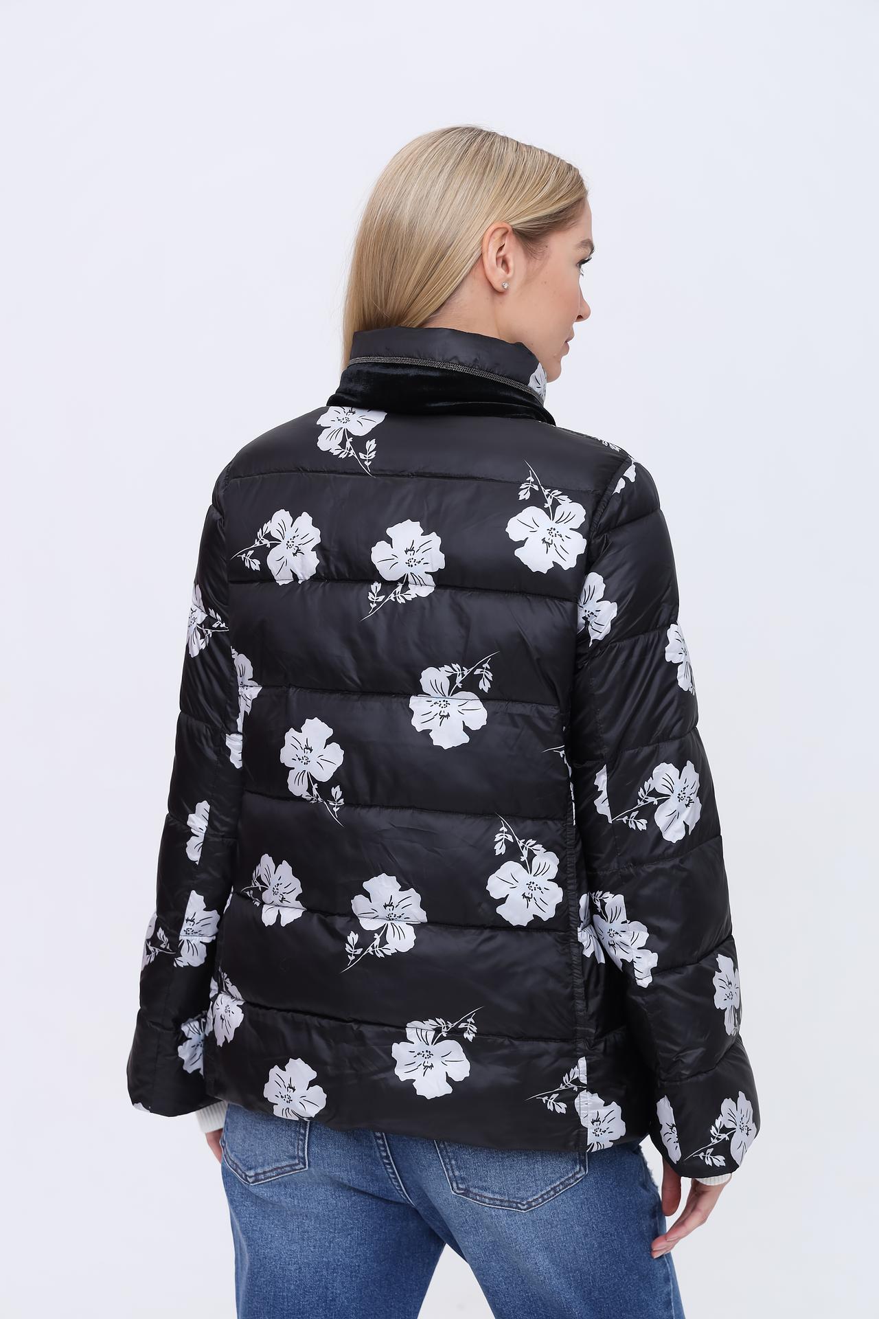 Стильная женская куртка Pezzo – идеальный выбор для создания ярких образов. Оригинальный принт с белыми цветами на черном фоне придает изделию изысканность и женственность. Модель прекрасно сочетается с джинсами и другой повседневной одежбой, позволяя экспериментировать со стилем.