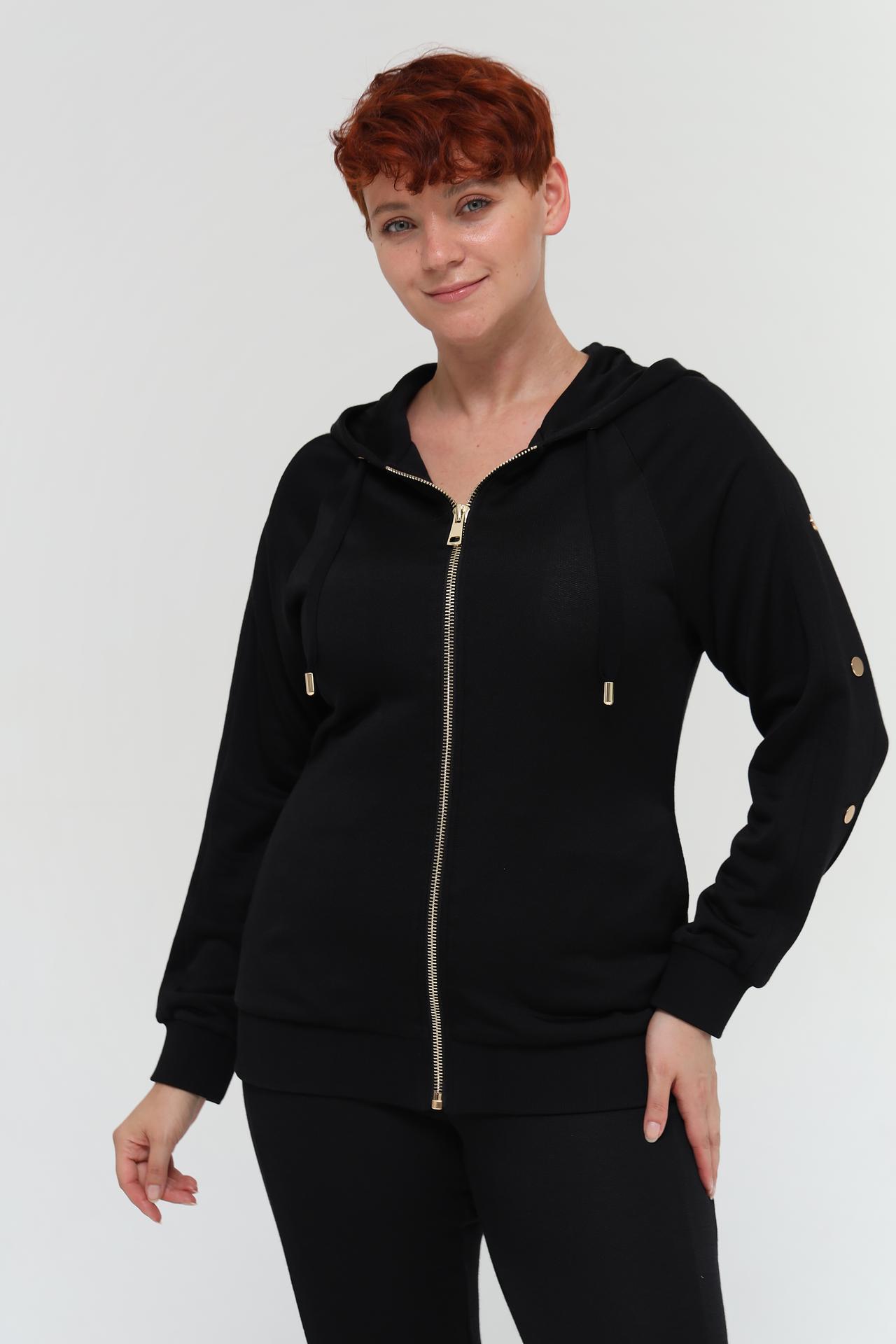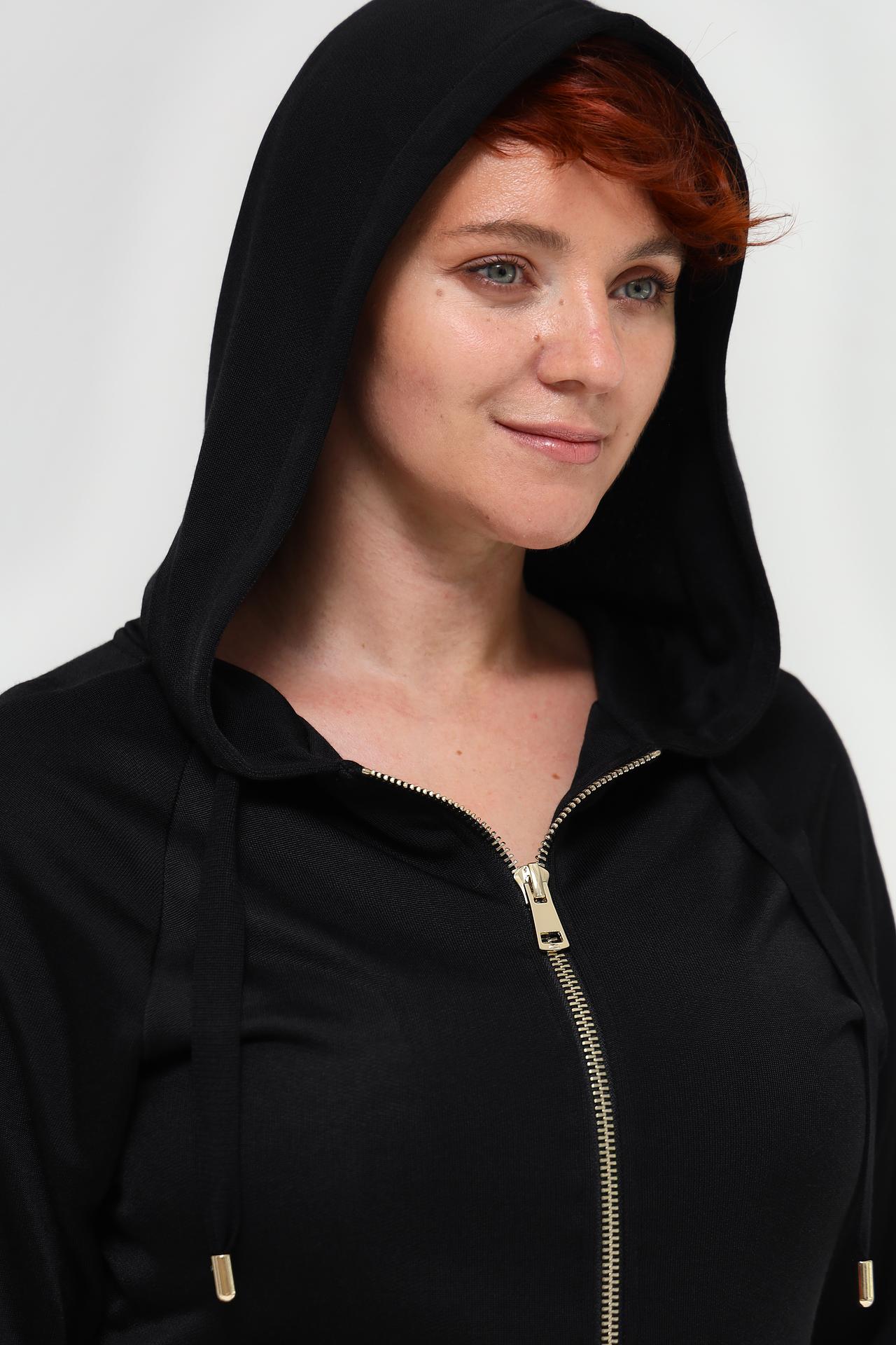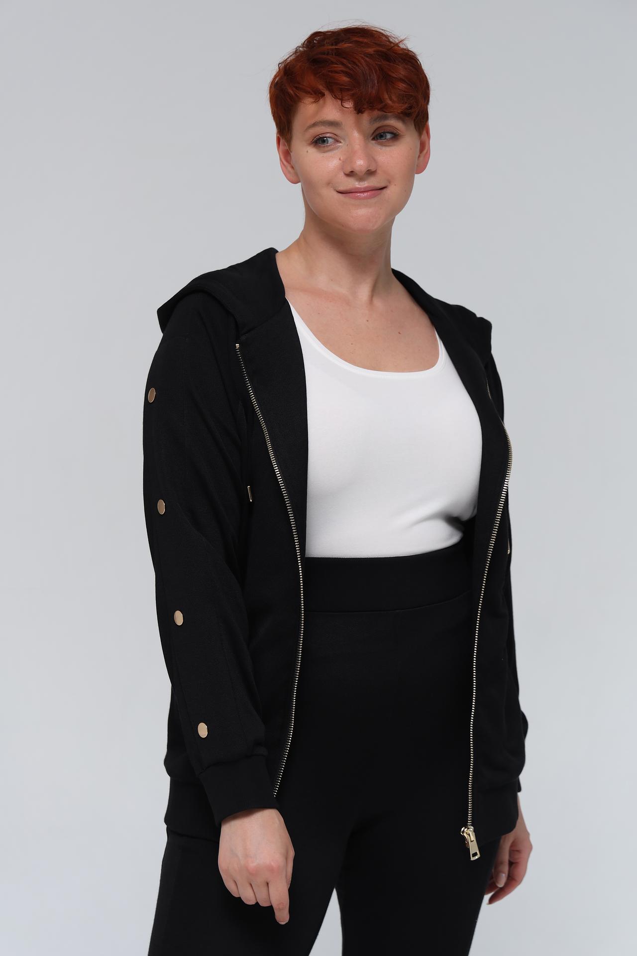 Модель с капюшоном и центральной молнией дополнена изящными золотистыми пуговицами на рукавах, придающими толстовке особый шик. Практичные боковые карманы делают её ещё более функциональной. Эта толстовка станет неотъемлемой частью вашего гардероба, подойдёт для повседневных выходов и активного отдыха.