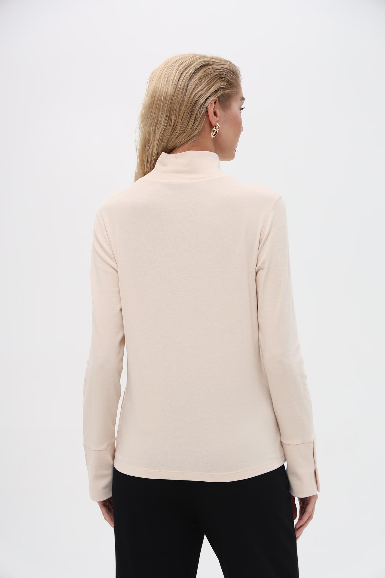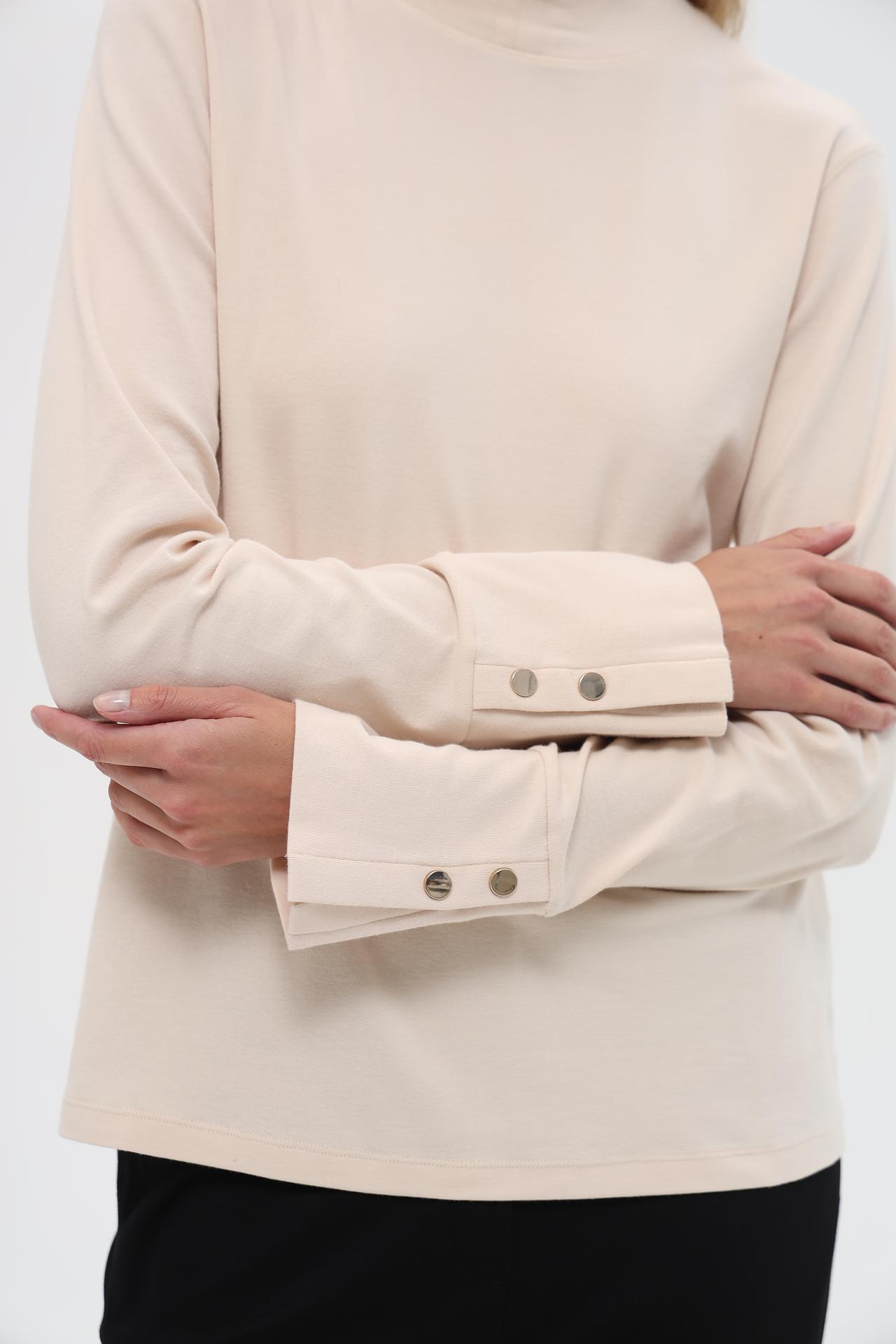 Водолазка прекрасно дополнит любой гардероб, от делового до повседневного. Отлично сочетается с брюками, юбками и джинсами. Стильный воротник-стойка добавляет образу изысканности, а пуговицы на манжетах служат декоративным элементом.