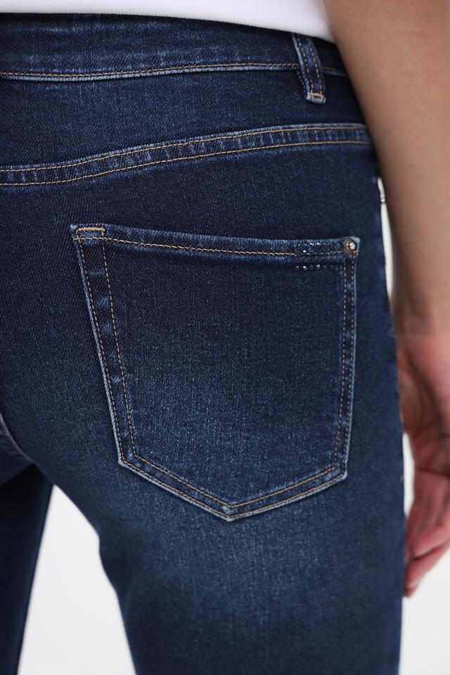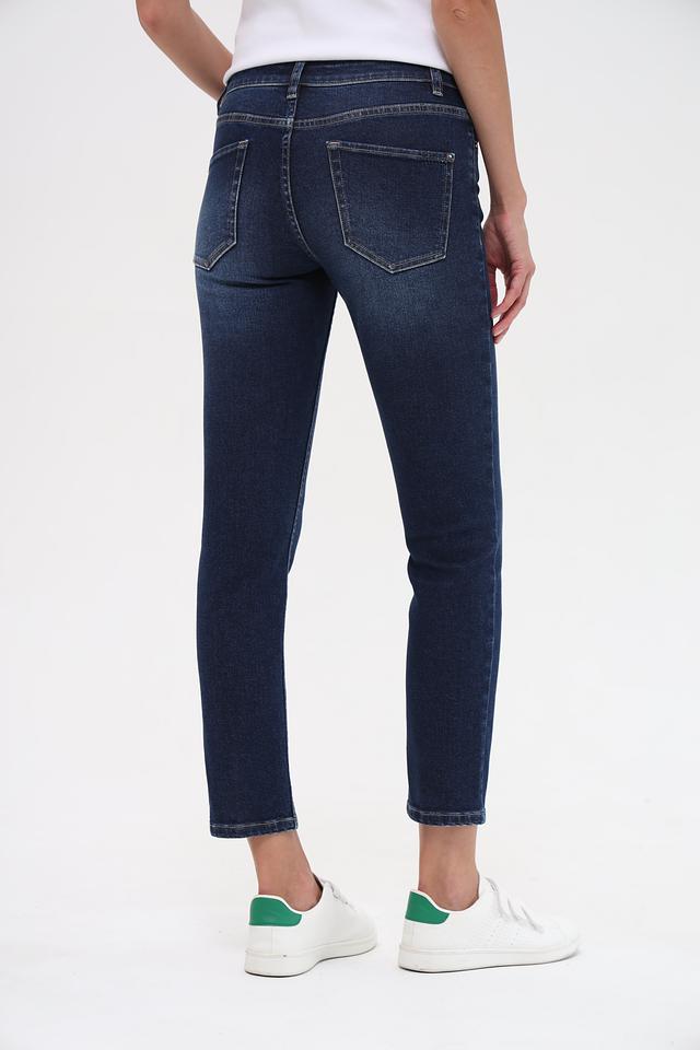 Джинсы Pezzo тёмно-синего цвета с укороченным кроем и эффектом потертости станут отличным дополнением к вашему гардеробу. Модель выполнена из качественного хлопка с добавлением эластана для комфортной посадки и свободы движений. Состав: хлопок 95%, эластерелл 4%, эластан 1%