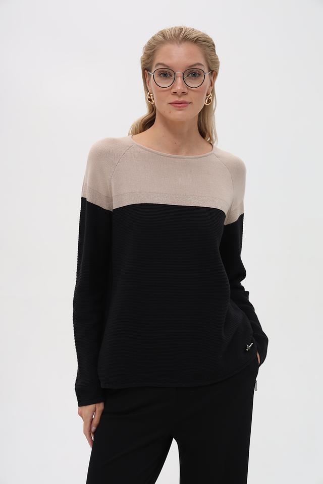 Женский пуловер Pezzo чёрно-бежевого цвета – стильная модель с комбинированным дизайном. Изготовлен из мягкого хлопка с добавлением акрила, обеспечивающего комфорт и износостойкость. Идеально сочетается с различными элементами гардероба. Состав: хлопок 60%, акрил 40%