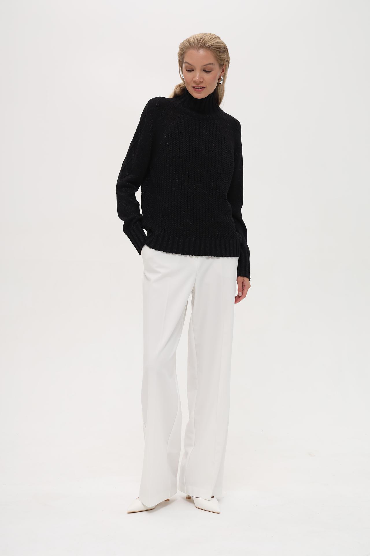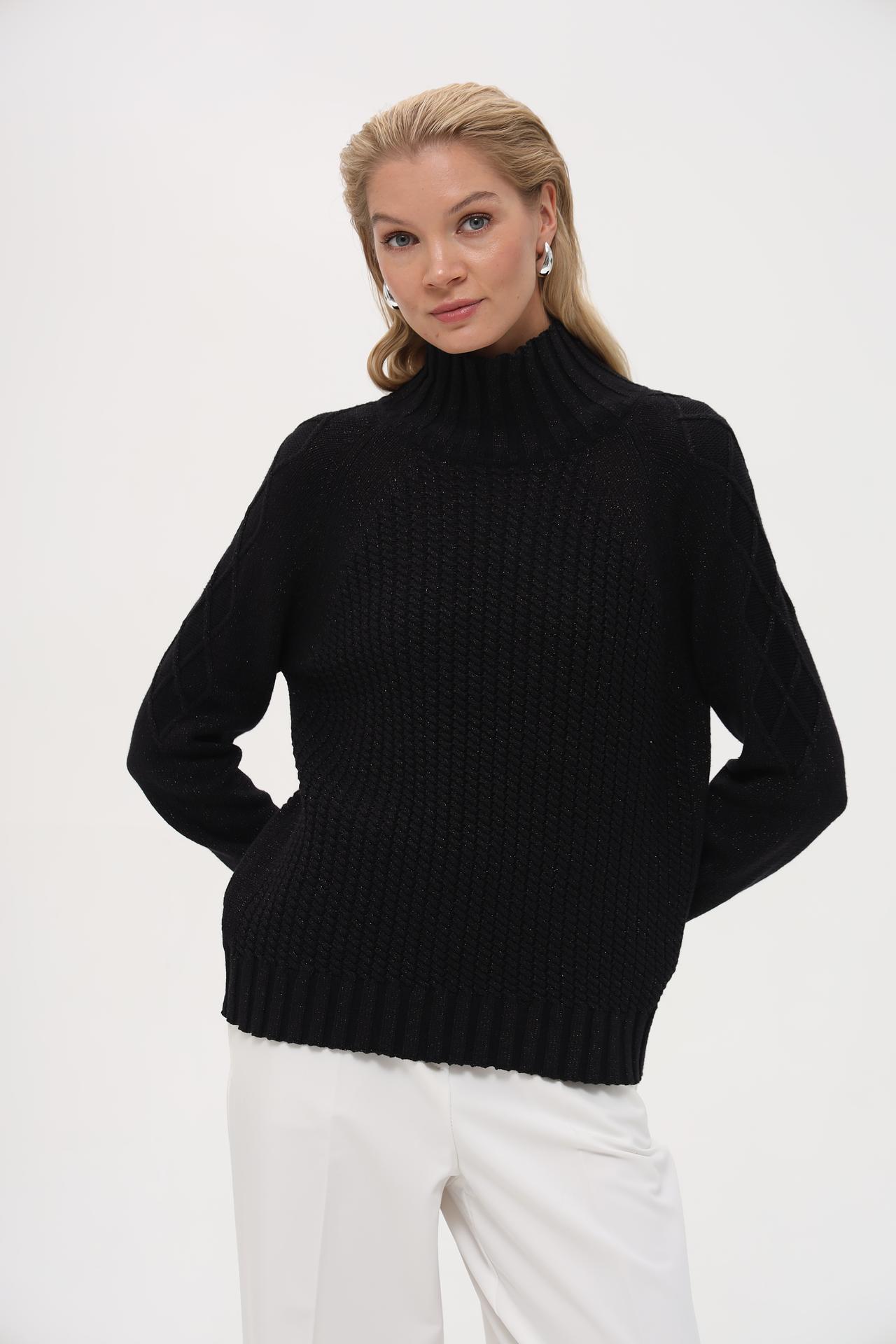 - Дизайн: Классический крой водолазки дополнен оригинальным узором «косы», который придает модели особую текстуру и визуальную привлекательность. Высокий воротник-гольф добавляет элегантности и защищает от холода.