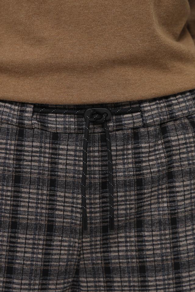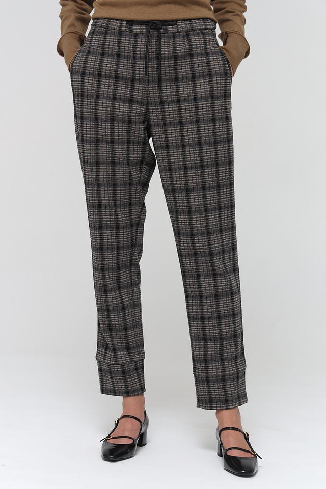 Особенности модели включают удобный пояс на резинке с регулирующим шнурком, боковые карманы и слегка зауженный к низу силуэт. Такой крой визуально удлиняет ноги и подходит для создания различных образов – от повседневных до более формальных.