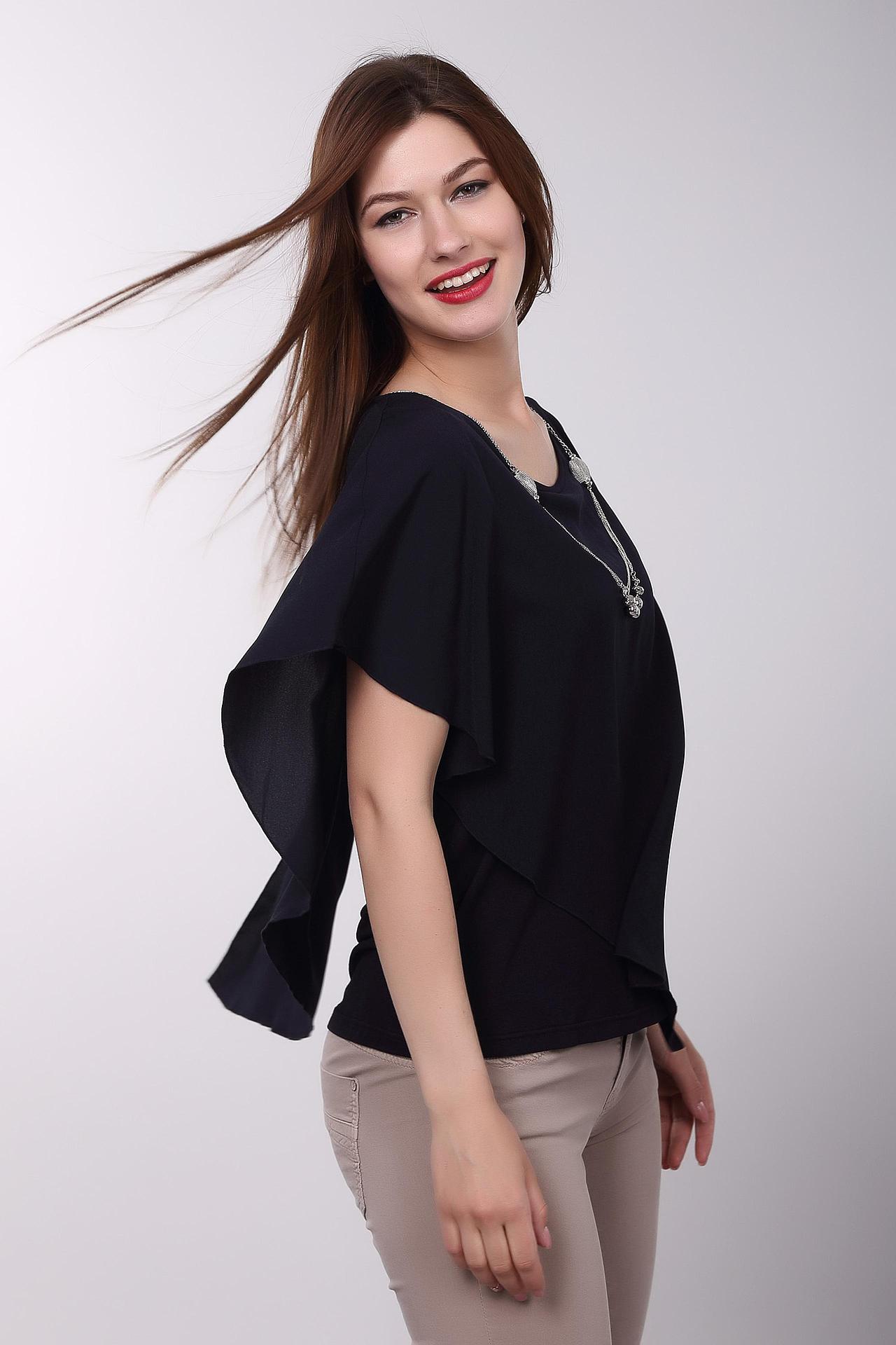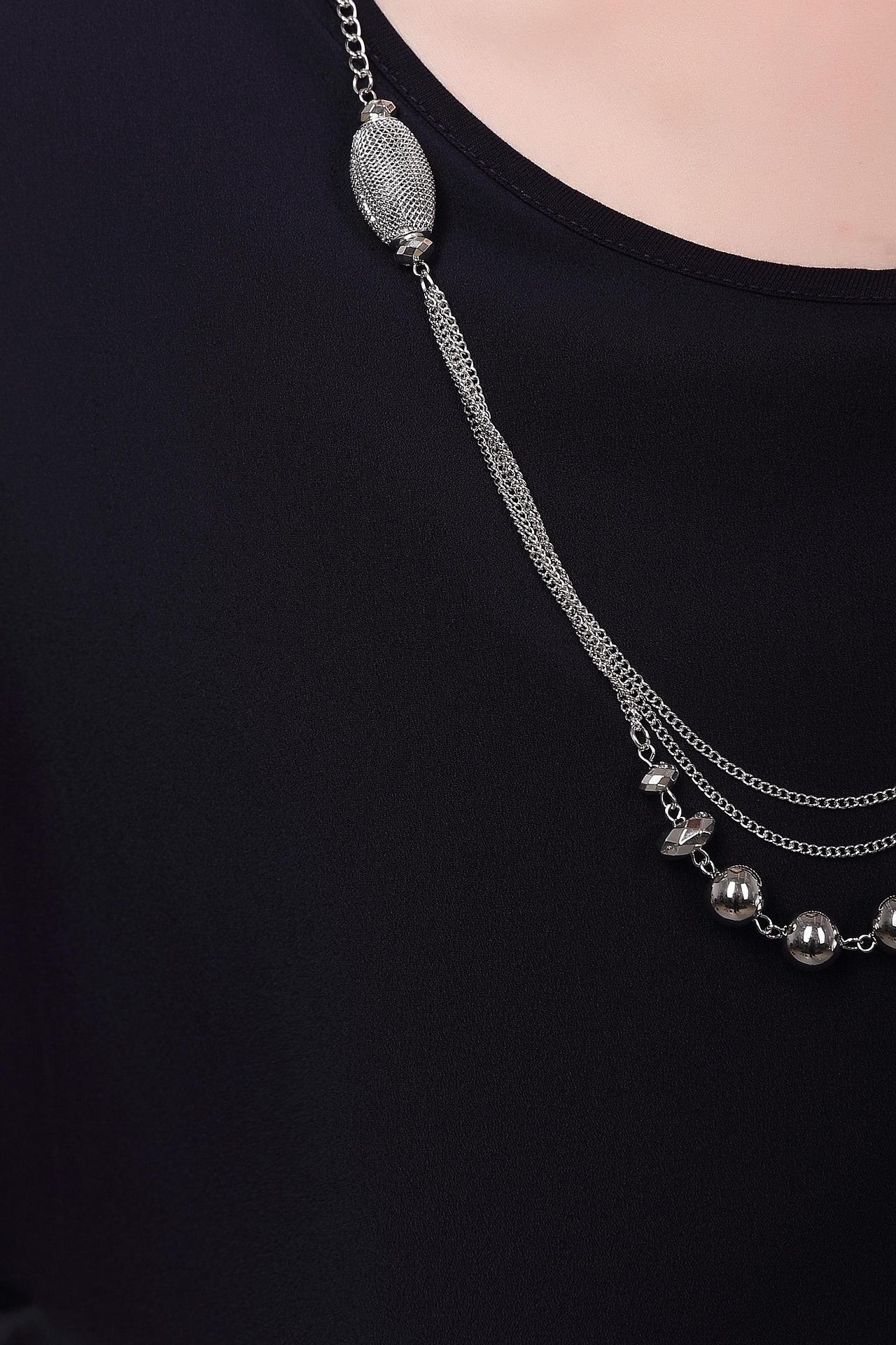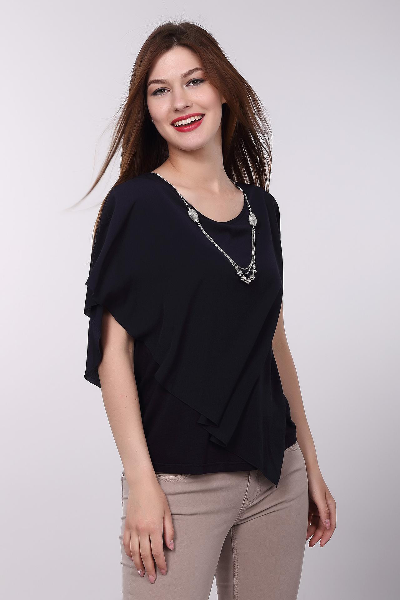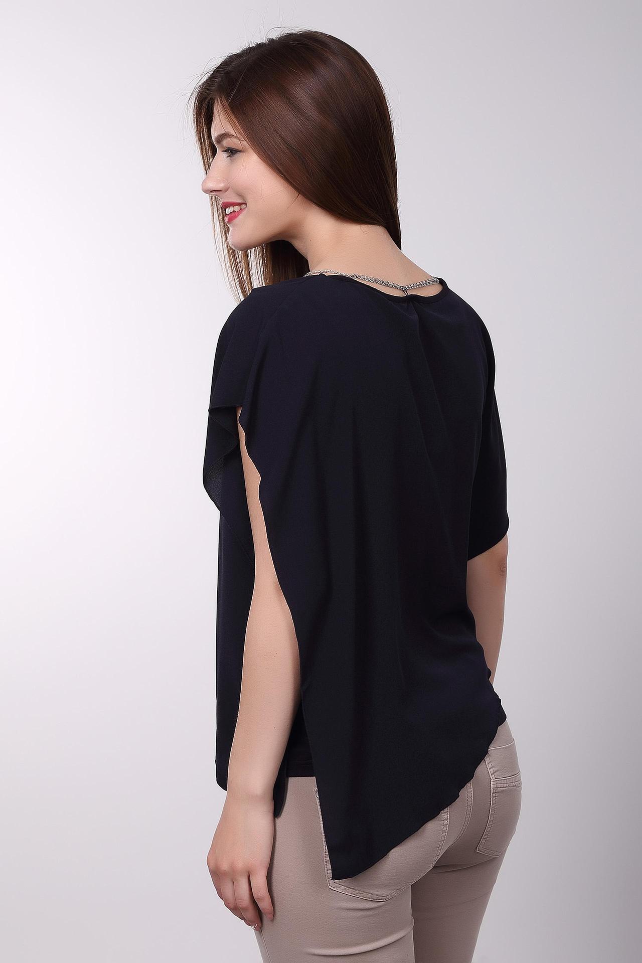 Элегантная чёрная блуза от Pezzo с асимметричным кроем придаст вашему образу неповторимый шарм. Свободный силуэт обеспечивает комфорт и свободу движений, а оригинальный дизайн делает эту блузу прекрасным выбором для создания стильных и запоминающихся образов. Мягкая и приятная к телу ткань обеспечивает комфорт при носке. Блуза идеально сочетается с брюками, юбками и джинсами, позволяя создавать разнообразные образы для любого случая. Подвеска добавляет изюминку и завершает образ.