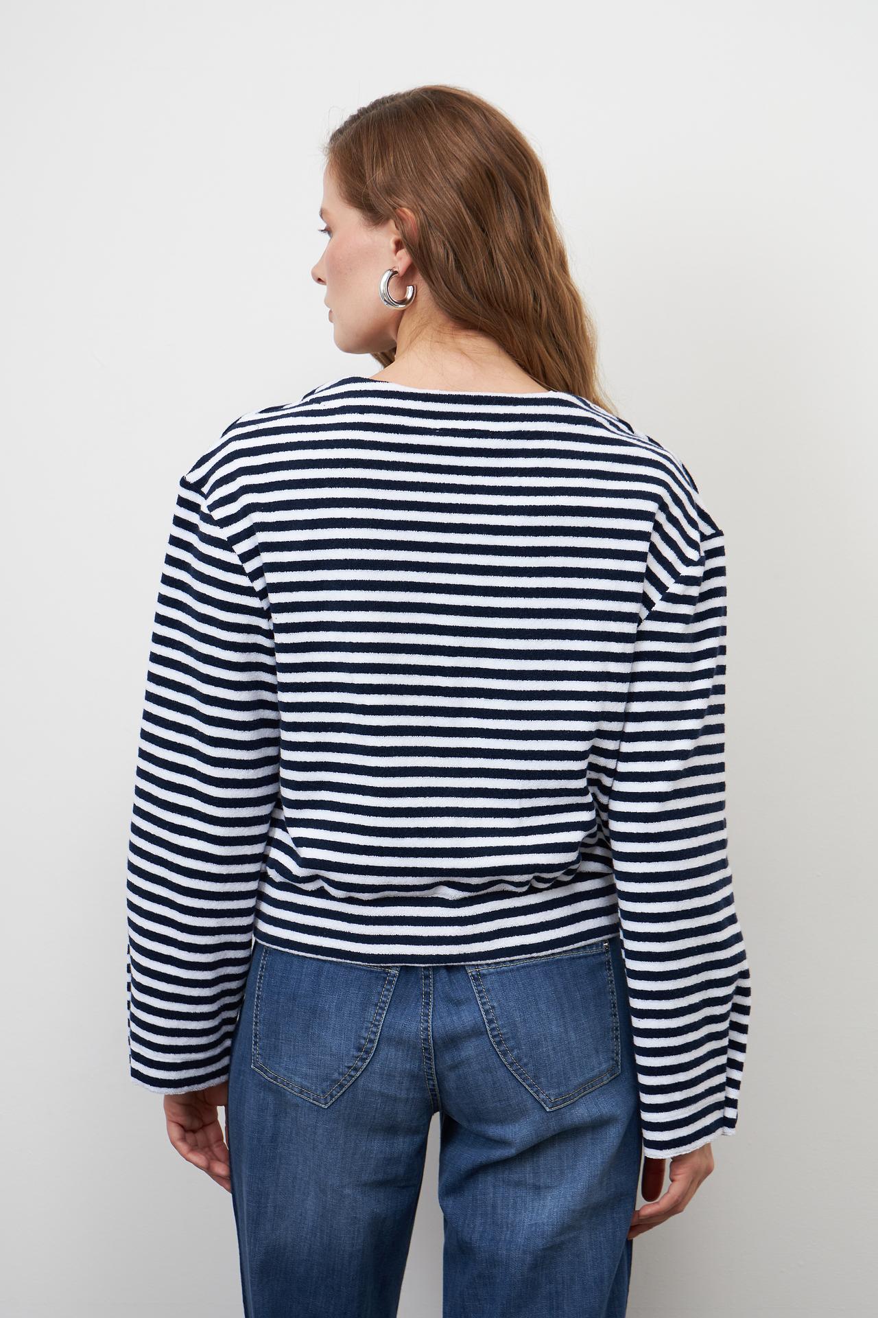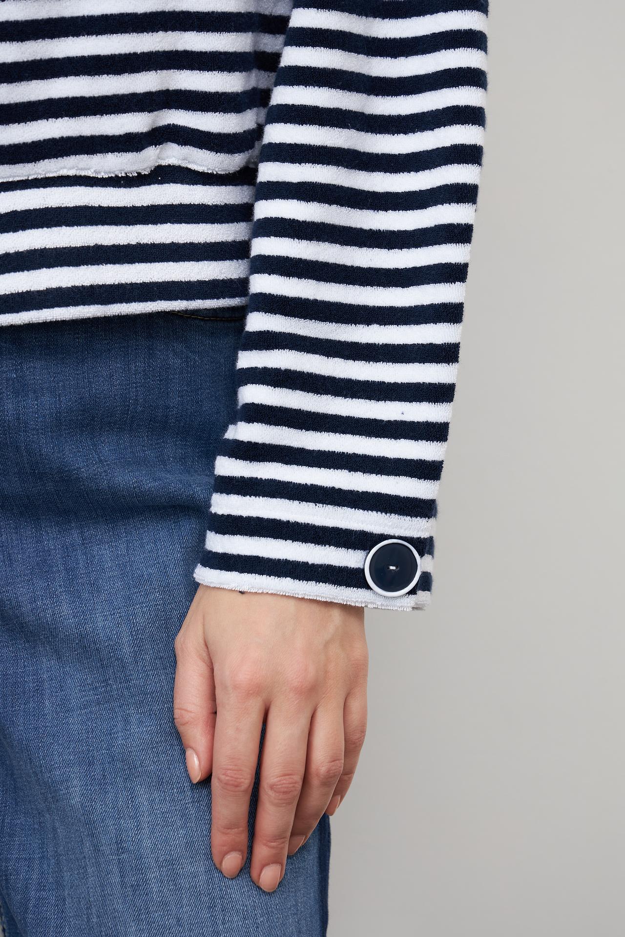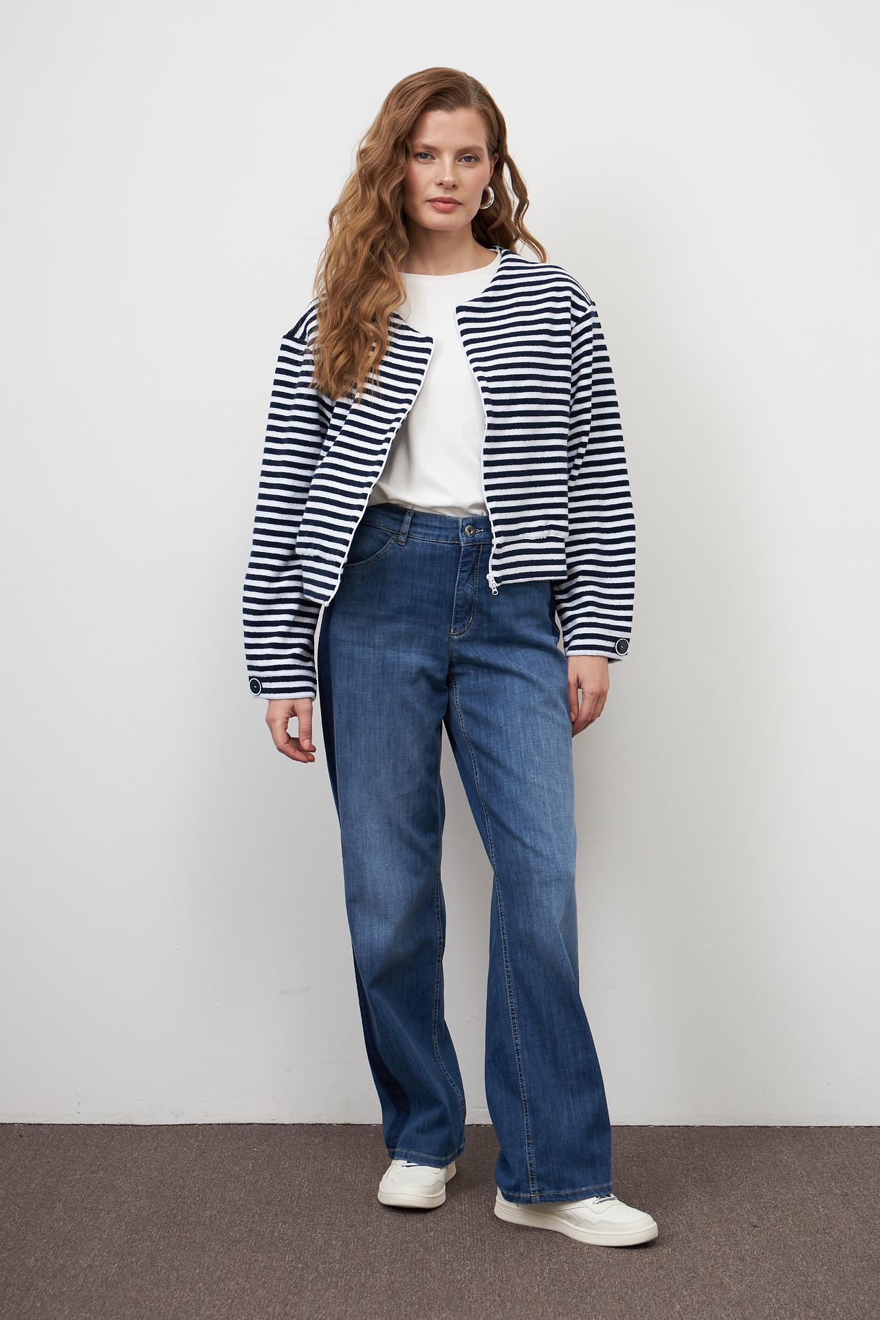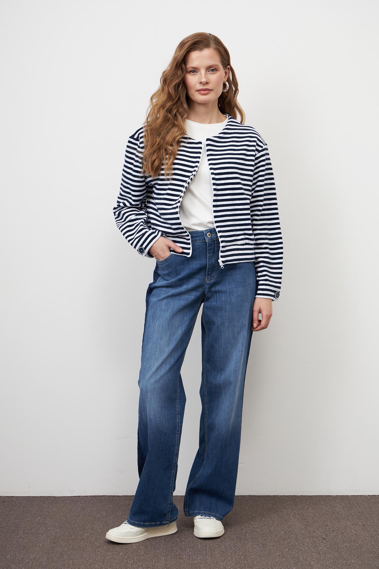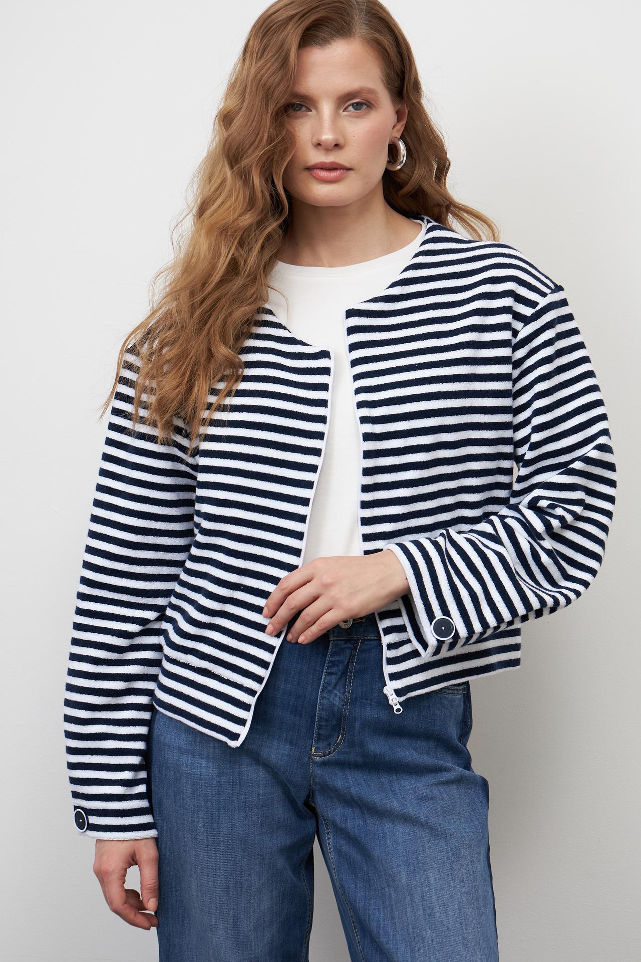Жакет в полоску - это универсальный элемент гардероба, который легко сочетается с различными стилями, от повседневного до более изысканного. Он добавит вашему образу нотку свежести и непринужденности.