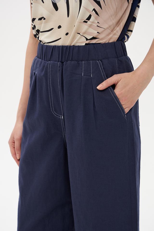 Синие брюки-кюлоты от Pezzo из льна и хлопка – стильное и комфортное решение для летнего гардероба. Прямой крой и высокая посадка обеспечивают свободу движений и безупречную посадку. Состав: лен 55%, хлопок 45%