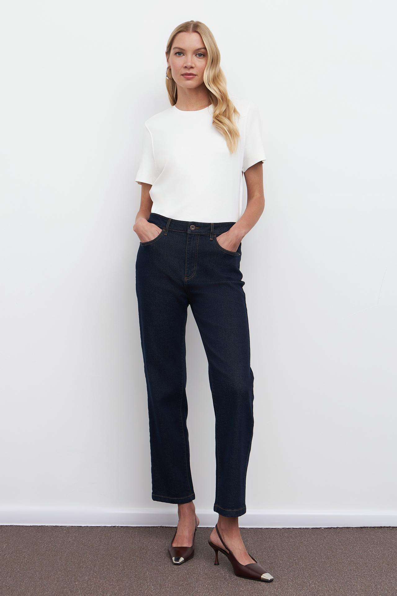 Эти джинсы идеально подойдут для женщин, ценящих комфорт и стиль. Они отлично сочетаются с блузками, свитерами и футболками, создавая модные и актуальные образы. Прямой крой визуально вытягивает силуэт, делая фигуру более стройной.