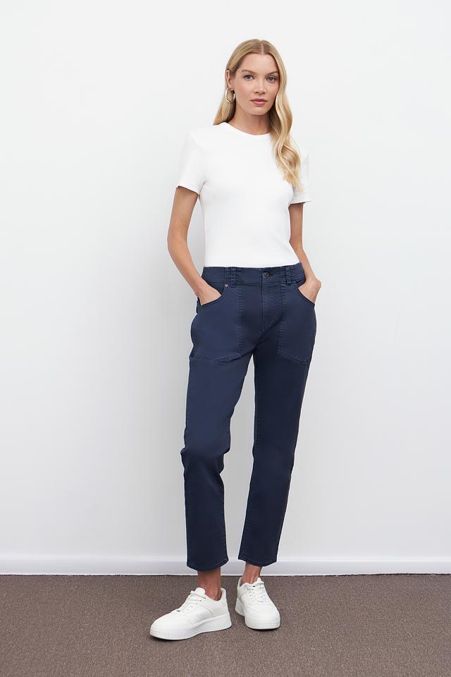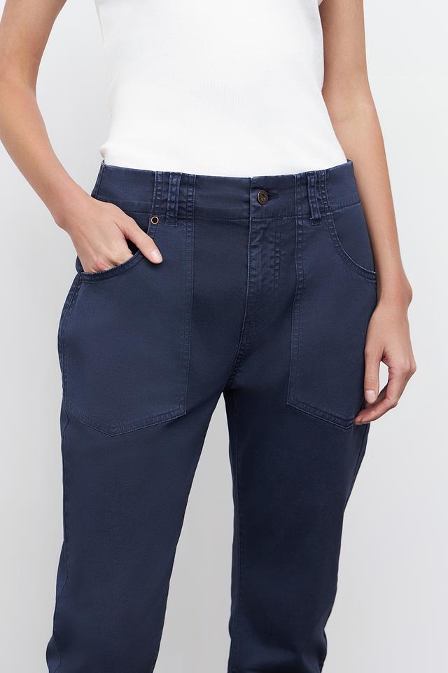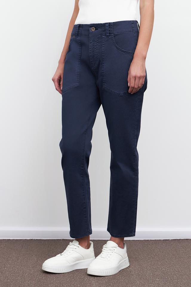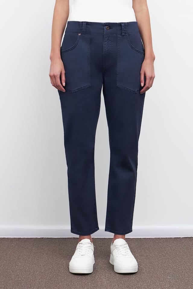 Женские брюки Pezzo тёмно-синего цвета – это стильное и комфортное решение для повседневного гардероба. Модель выполнена из хлопка с добавлением эластана, что обеспечивает удобную посадку и свободу движений. Брюки отличаются оригинальным дизайном с накладными карманами. Состав: хлопок 97%, эластан 3%