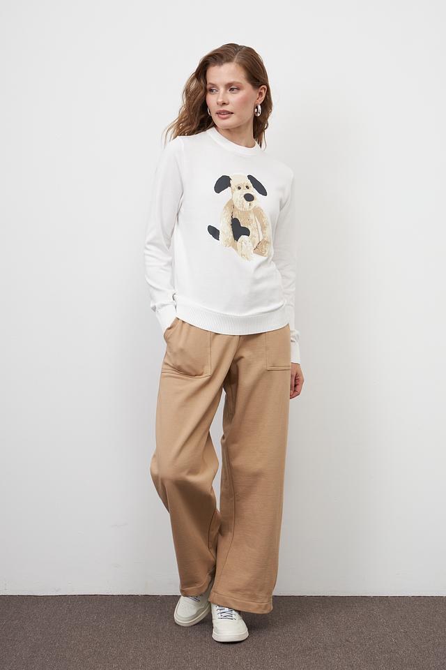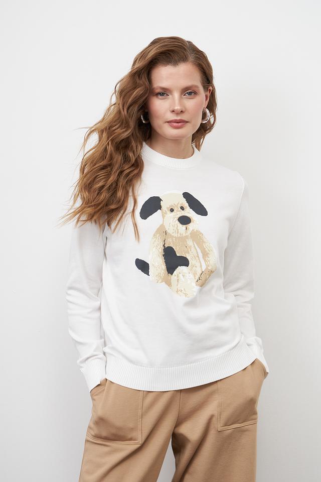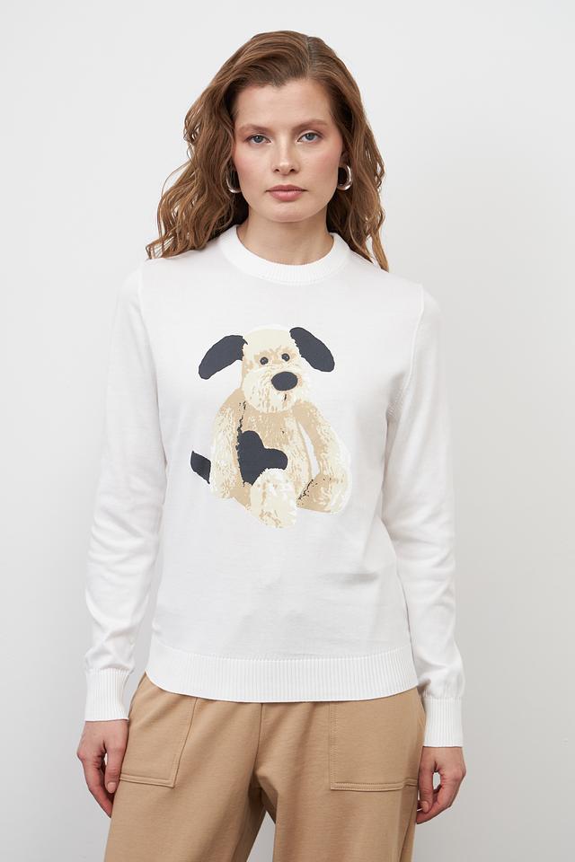 Белый пуловер Pezzo из 100% хлопка с очаровательным принтом щенка. Комфортный крой и мягкий материал делают этот пуловер идеальным выбором для повседневного образа. Состав: хлопок 100%