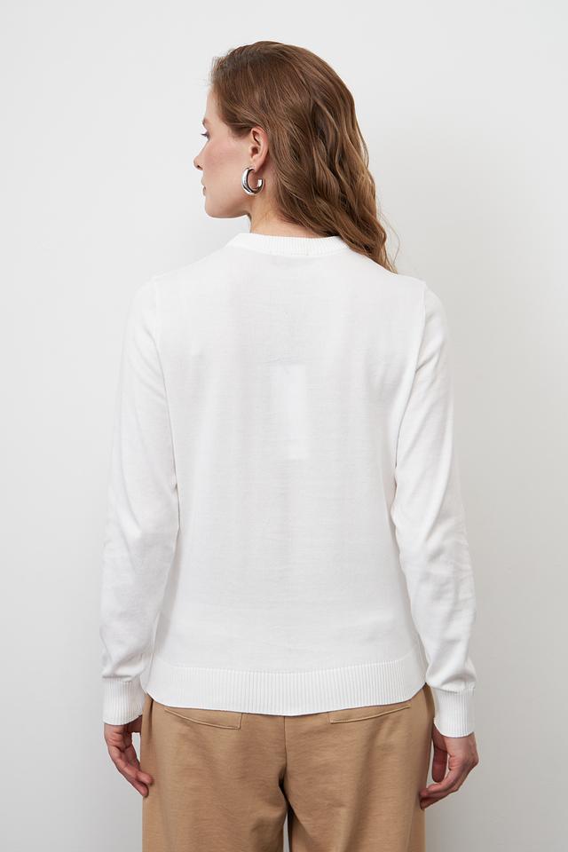 Пуловер имеет классический крой с круглым вырезом горловины и длинными рукавами, обеспечивающими комфорт и свободу движений. Изготовленный из 100% хлопка, он приятен к телу, хорошо пропускает воздух и прост в уходе.