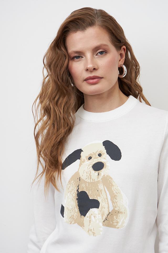 Этот стильный пуловер от Pezzo станет прекрасным дополнением к вашему гардеробу. Выполненный в белом цвете, он украшен ярким принтом в виде милого щенка, что придает ему игривый и привлекательный вид.
