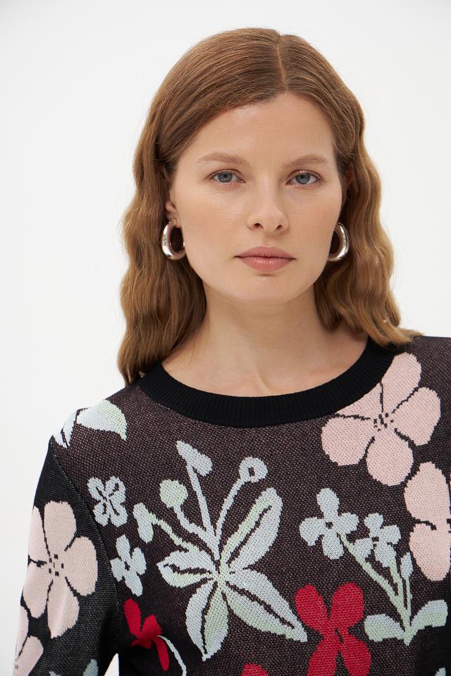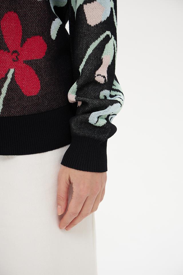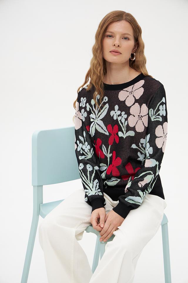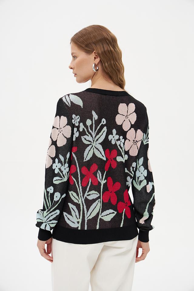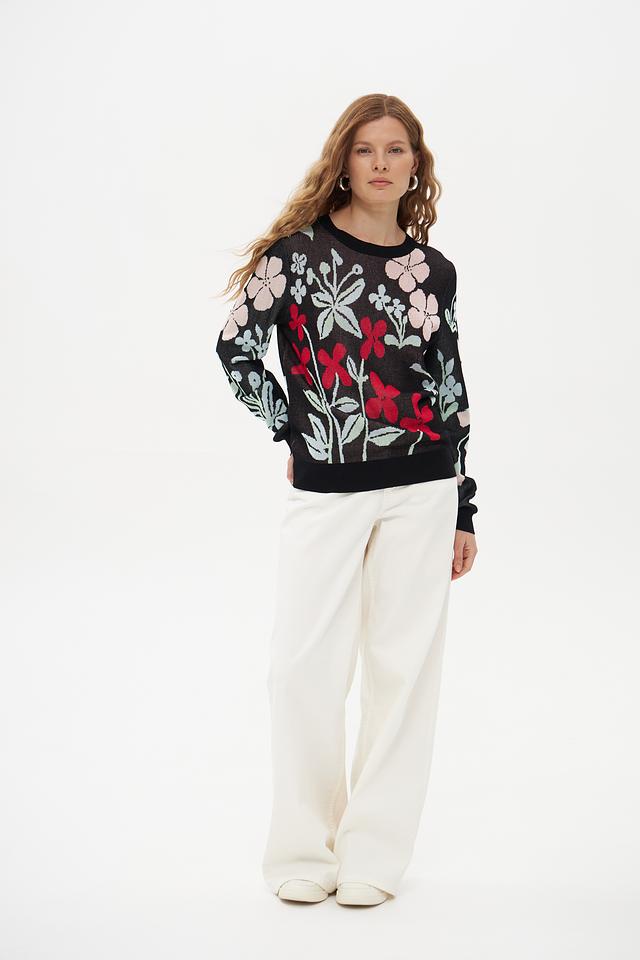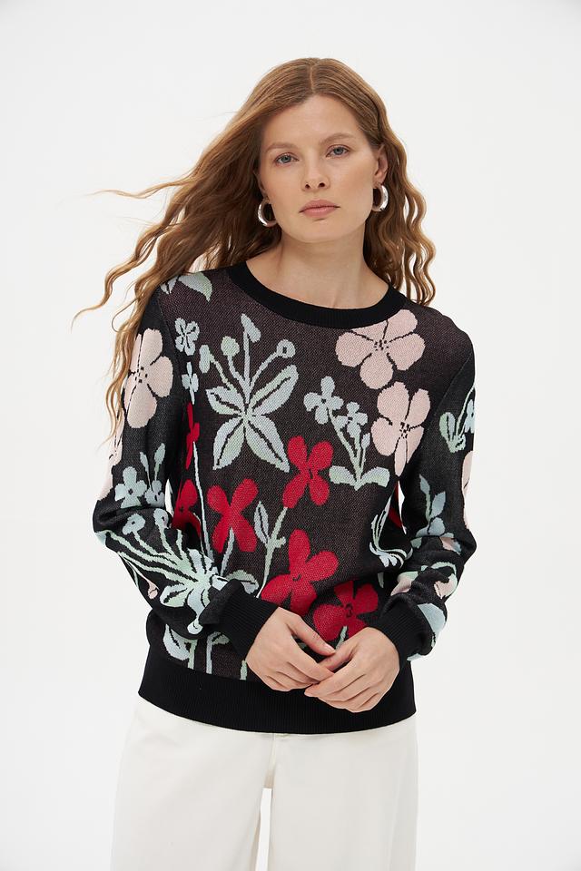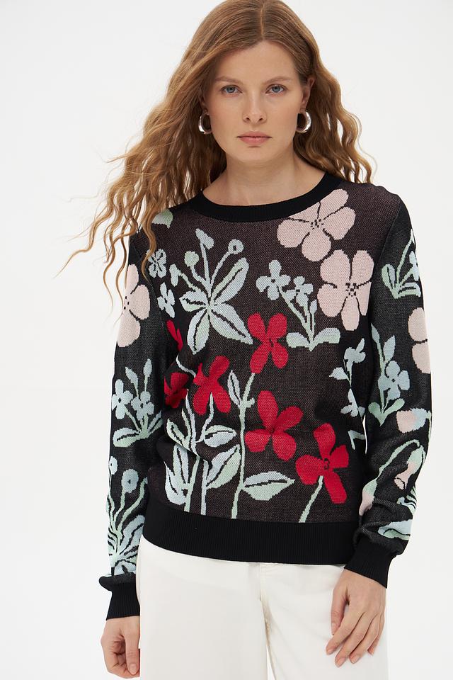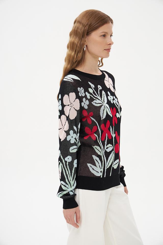 Женский пуловер Pezzo чёрного цвета с ярким цветочным принтом станет стильным дополнением к вашему гардеробу. Изготовлен из мягкой вискозы с добавлением нейлона для комфорта и износостойкости. Состав: вискоза 89%, нейлон 11%